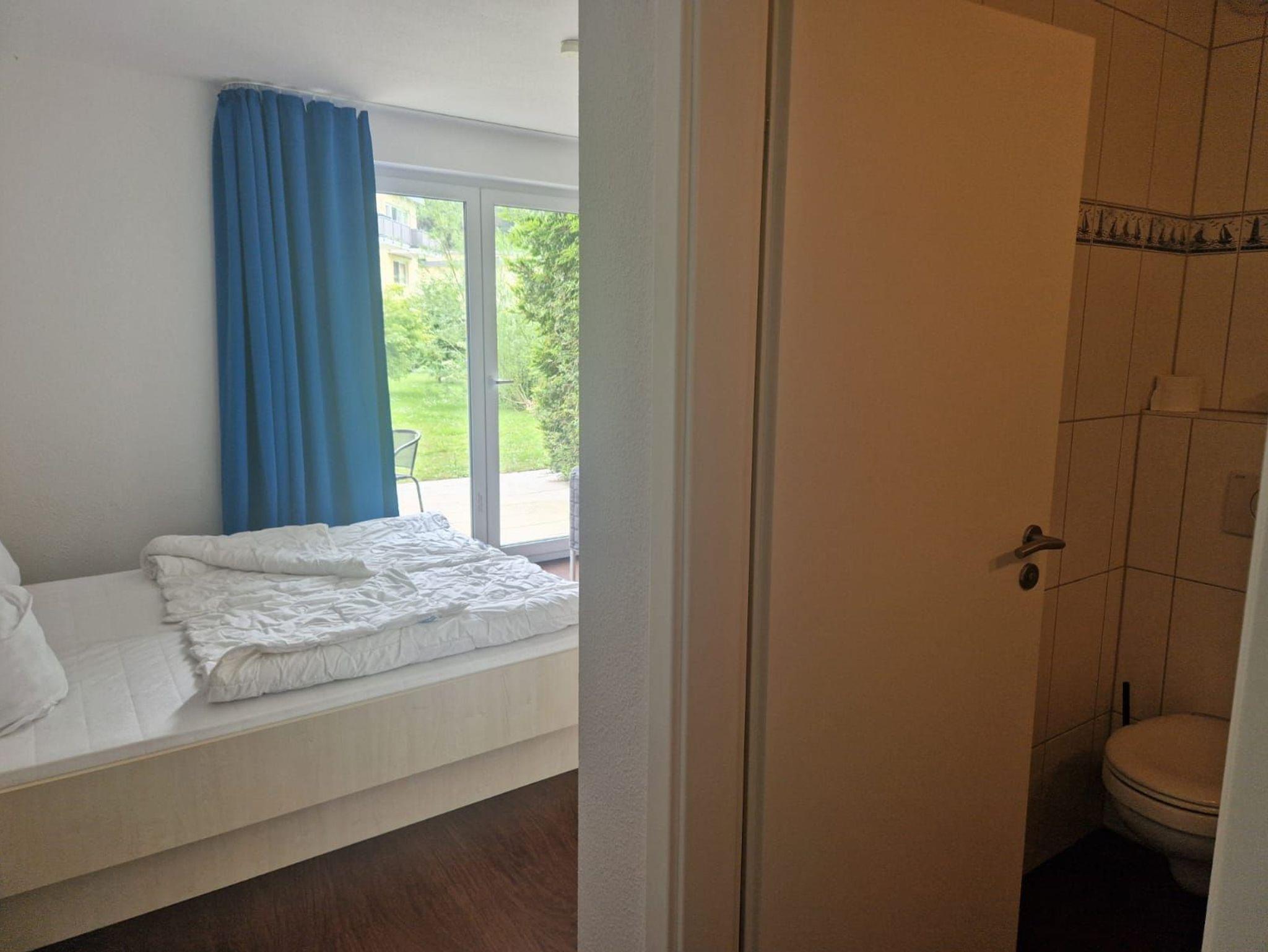 Diese Zimmerkombination mit eigenem Hauseingang verfügt über einen kleinen Flur und zwei getrennt zu begehende Doppelzimmer. Mit Fernsehgeräten und jeweils einem Duschbad sowie einer Terrasse ist es gut geeignet für max. 4 Personen. Das größere Zimmer (22m²) hat eine integrierte Mini-Küche. Von diesem Zimmer gelangt man auf die Terrasse mit angrenzender Grünfläche.