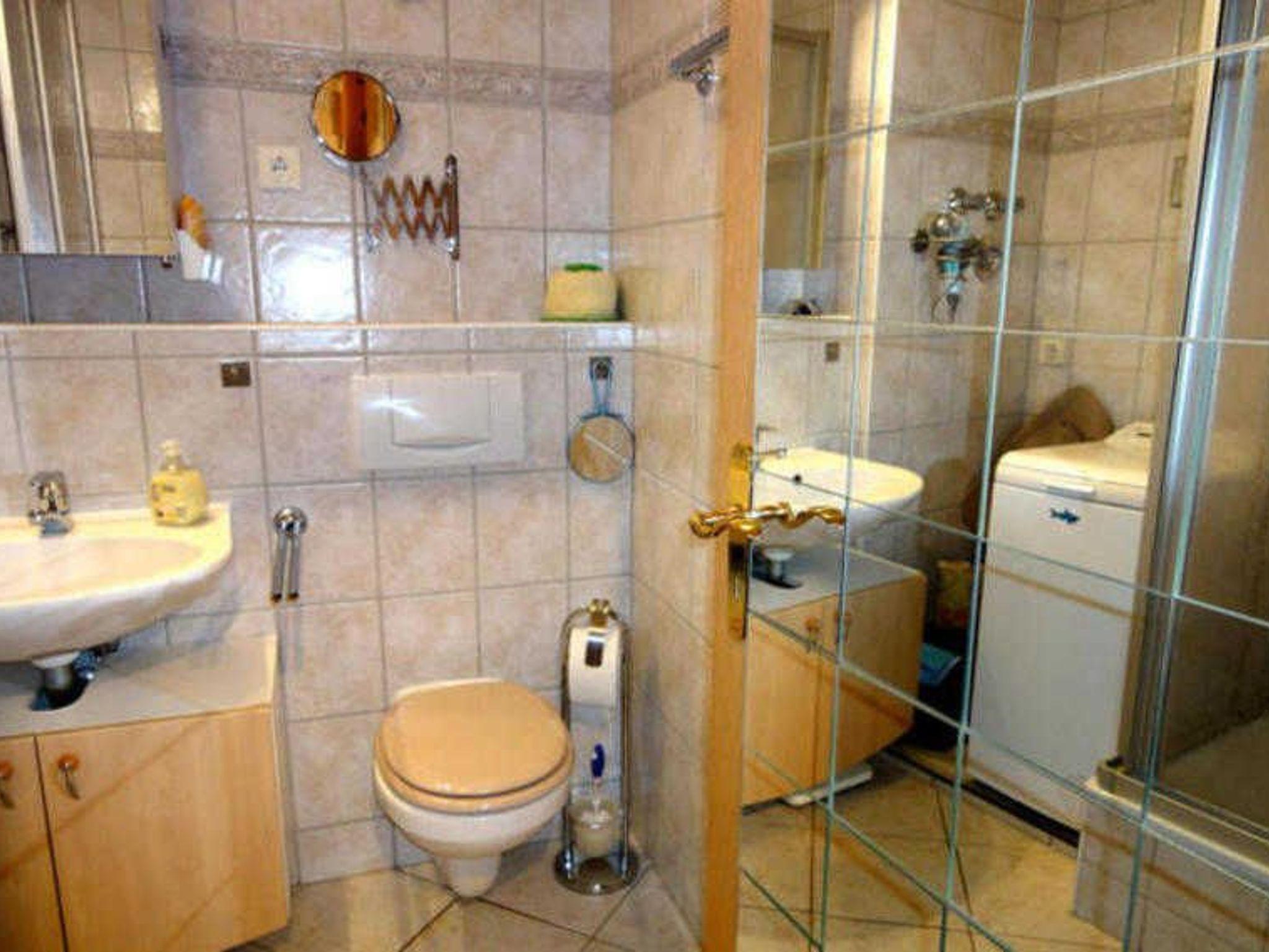 Das schön geflieste Duschbad verfügt über ein WC und eine Waschmaschine.