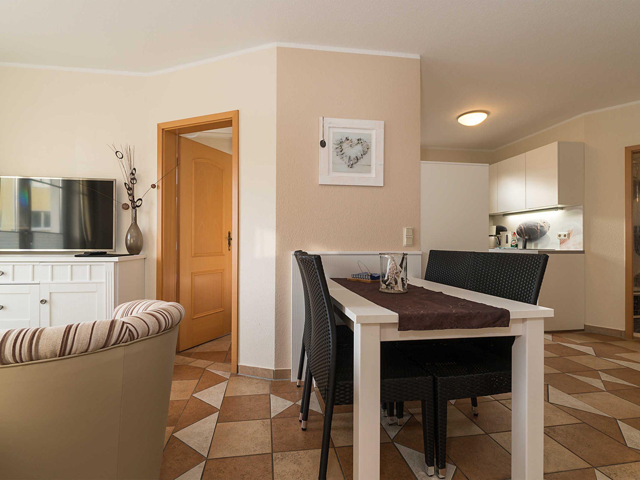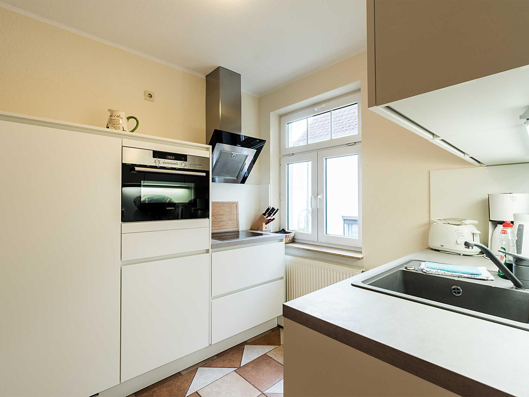 Die Ferienwohnung ist geschmackvoll eingerichtet und gehört zu einem Gästehaus mit insgesamt 4 Ferienwohnungen. Unsere Villa wurde 2013 komplett renoviert und neu möbliert. Im Keller stehen eine Waschmaschine und ein Trockner zur Verfügung. Auf dem Grundstück kann eine Sitz- und Grillecke genutzt werden (Gemeinschaftsnutzung) und unsere kleinen Gäste können sich in und an unserem Buddelschiff austoben. Mitgebrachte Fahrräder können im abschließbaren Fahrradschuppen sicher untergestellt werden.