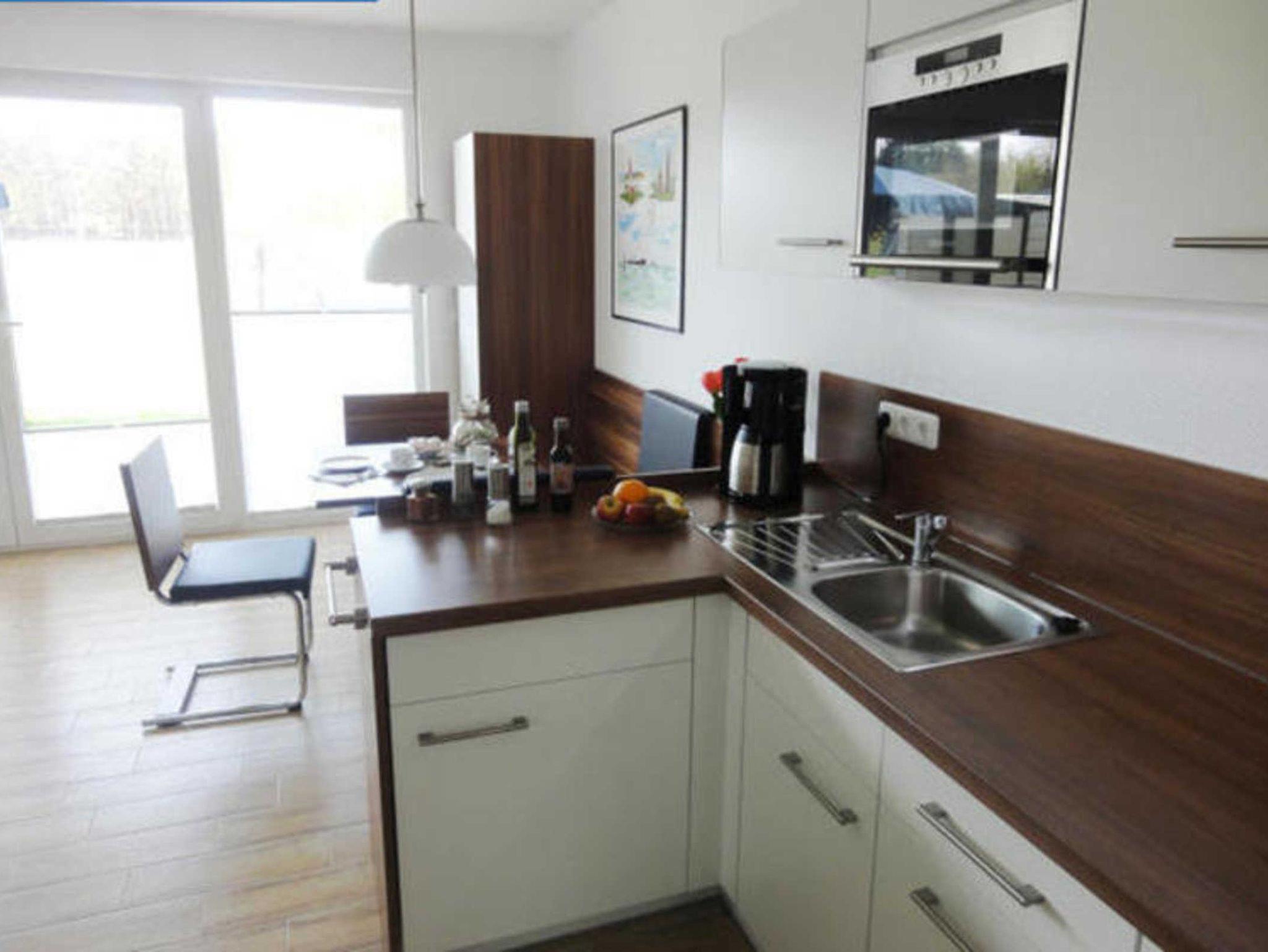 2 Zimmer Ferienwohnung im Ferienwohnpark Küstenwald mit Terrasse, Schlafzimmer, Küchenzeile, Bad mit Dusche und WC, Wohnzimmer mit Couch und Flachbild-TV, PKW-Stellplatz