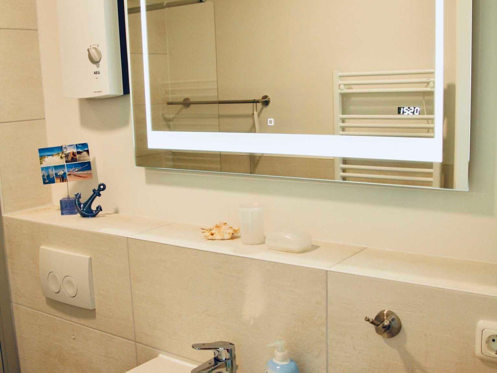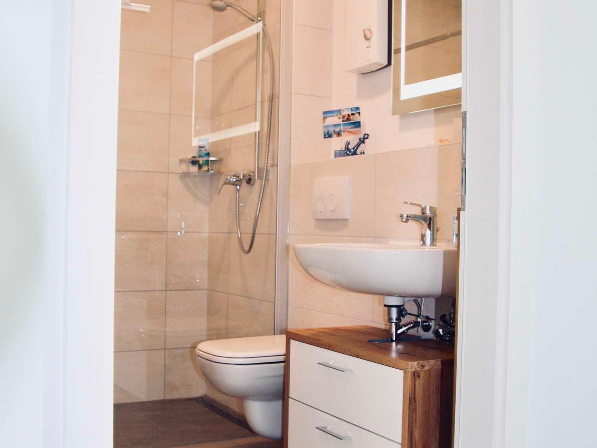 Ankommen, abschalten und genießen - dort wo sich Meer und Wald begegnen. Freuen Sie sich auf unsere, für Sie neu eingerichtete, moderne und hochwertige Nichtraucher-Ferienwohnung. Die Wohnung befindet sich im 1.OG mit herrlichem Waldblick und ist über eine separate Außentreppe erreichbar. Das Bad, mit begehbarer Dusche, verfügt über Fußbodenheizung und Handtuchwärmekörper. Die Küche ist eingerichtet mit vollwertiger Spülmaschine, Induktionsherd und Backofen-/Mikrowelle.