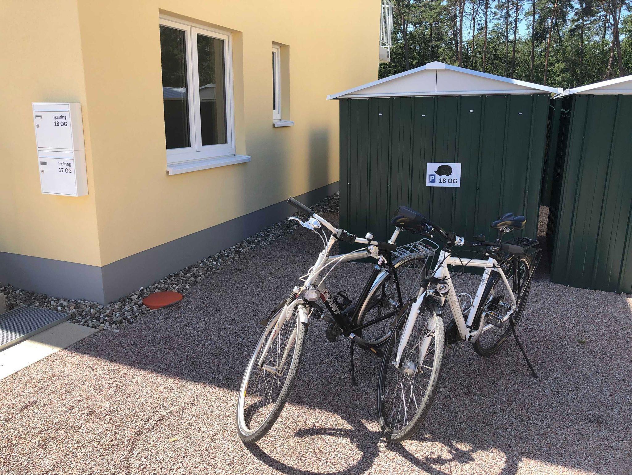 Sie finden in der 42 qm-Wohnung einen gemütlichen Schlafraum, ein Bad mit begehbarer Dusche und WC, sowie eine geräumige Wohnküche vor. Im separaten Fahrradschuppen haben wir für Sie 2 Fahrräder bereit gestellt. Direkt vor dem Haus steht Ihnen ein eigener Pkw-Stellplatz kostenfrei zur Verfügung.