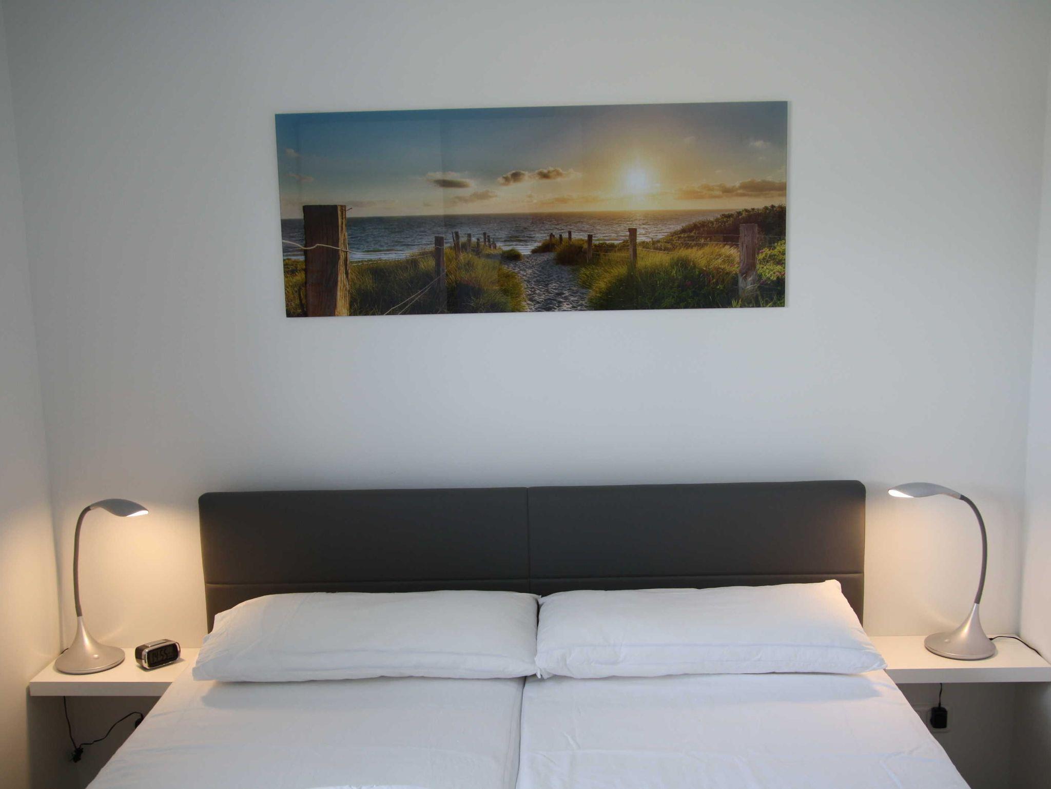 • In der Wohnung haben wir den Schlafraum mit einem 160 x 200 cm Doppelbett mit 2 hochwertigen, allergikerfreundlichen Matratzen, 2 Bettdecken (135x200 cm) und Kopfkissen ausgestattet. Ein Wäschepaket mit Bettzeug, Handtuch, Duschtuch, Geschirrtuch und Duschmatte kann zugebucht werden.