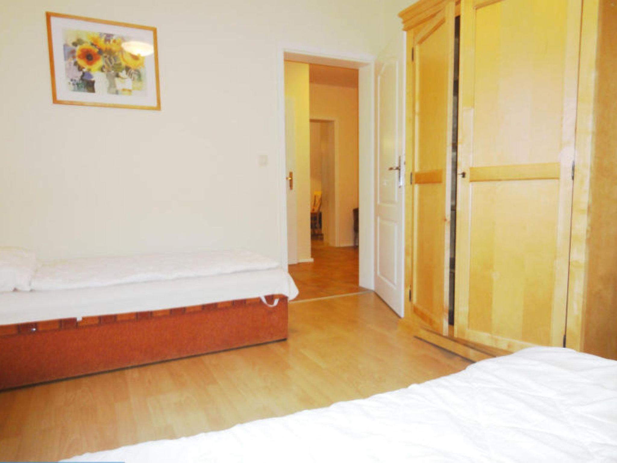 Das Schlafzimmer verfügt über zwei zusammengestellte Liegen. In einem weiteren Zimmer stehen 2 Einzelliegen.