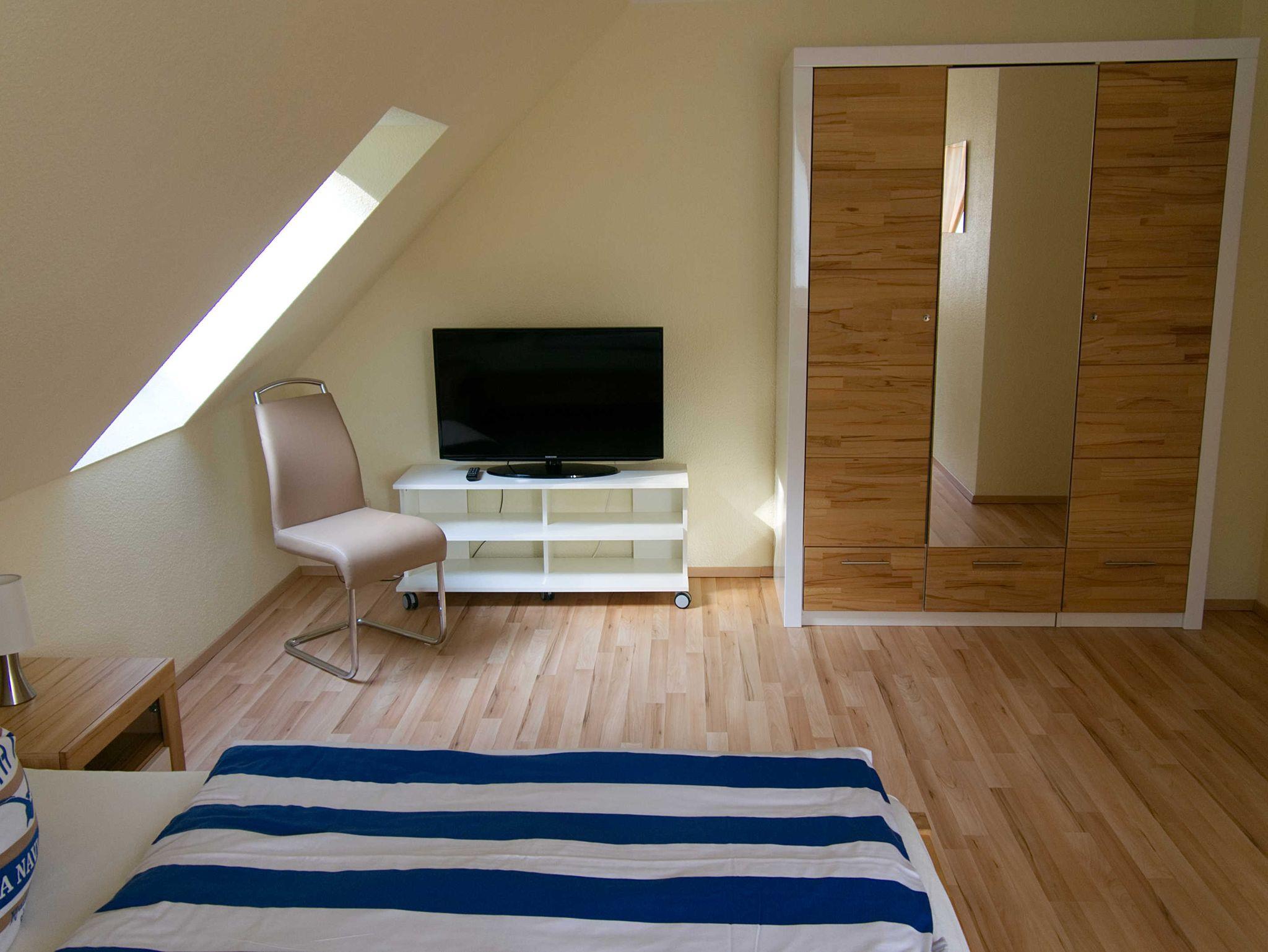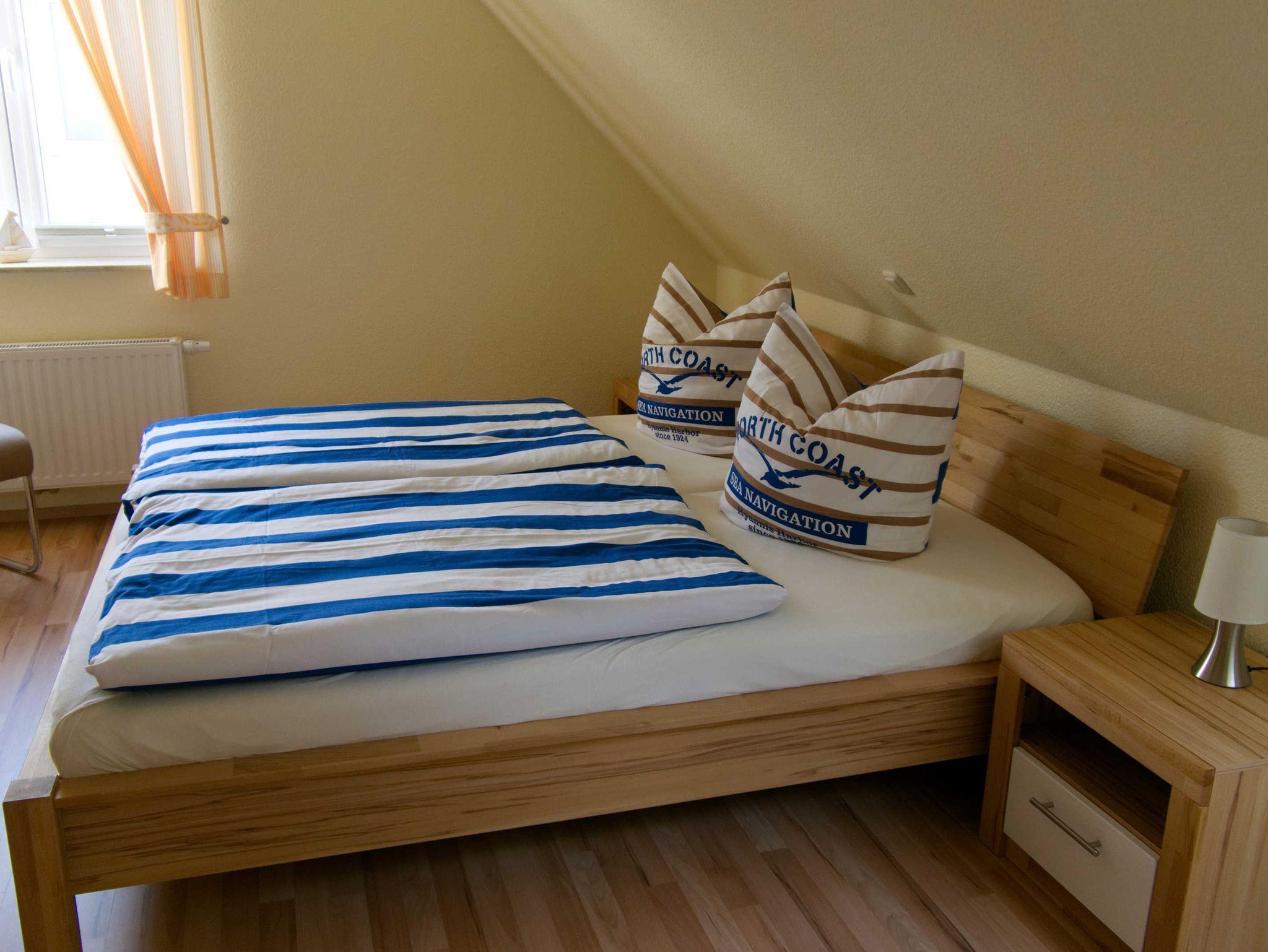 Im OG befinden sich drei Schlafzimmer: Schlafzimmer 1 mit Doppelbett (180 x 200 cm) incl. Flachbildschirm, Schlafzimmer 2 mit zwei Einzelbetten (jeweils 90 x 200 cm), Schlafzimmer 3 mit einem Doppelbett (160 x 200 cm) sowie ein Wannenbad inkl. diverser Ablageflächen/Haken. Für ein Kleinkind ist ein Reisebett inkl. extra Matratze und Bettzeug und ein Hochstuhl verfügbar. In beiden Bäder sind jeweils ein Fön vorhanden.