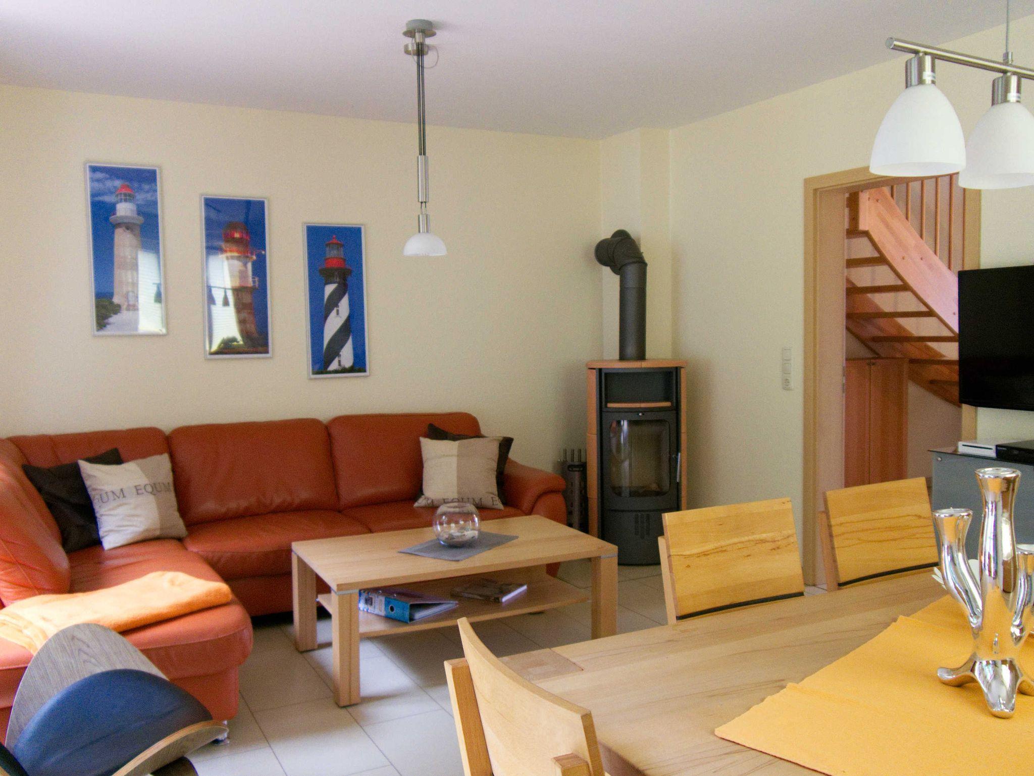 Unser Ferienhaus bietet Ihnen Komfort zu jeder Jahreszeit. Der Kamin im Wohnzimmer sorgt für wohlige Wärme im Winter, im Frühjahr und Herbst lädt ein Saunabesuch zum Aufwärmen ein und nach einem ausgiebigen Strandtag bzw. -spaziergang im Sommer kann man bei einem Grillabend auf der Terrasse mit Blick in den Garten und den Wald den Urlaubstag genießen und ausklingen lassen.