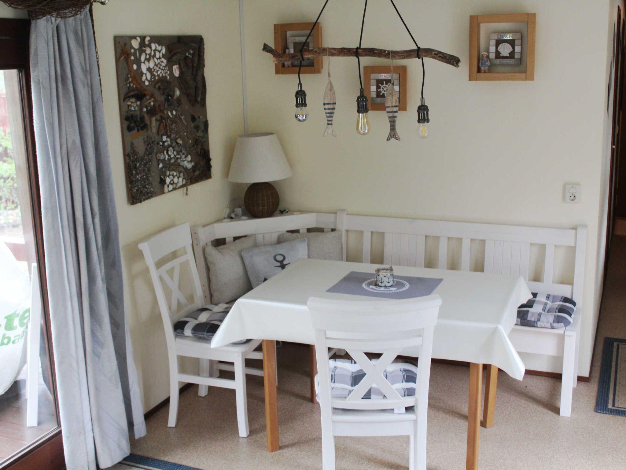 Es verfügt über 3 Zimmer (Schlafzimmer mit Doppelbett, Kinderzimmer mit Etagenbett), ein Bad mit Dusche und eine Küchenzeile mit Cerankochfeld, Backofen sowie Kühlschrank, Kaffeemaschine, Wasserkocher, Geschirr und Toaster.