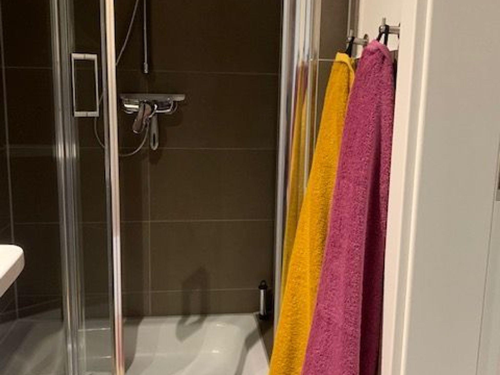 • Bad: Dusche, Waschbecken, Toilette, Spiegel, Schrank, Fön