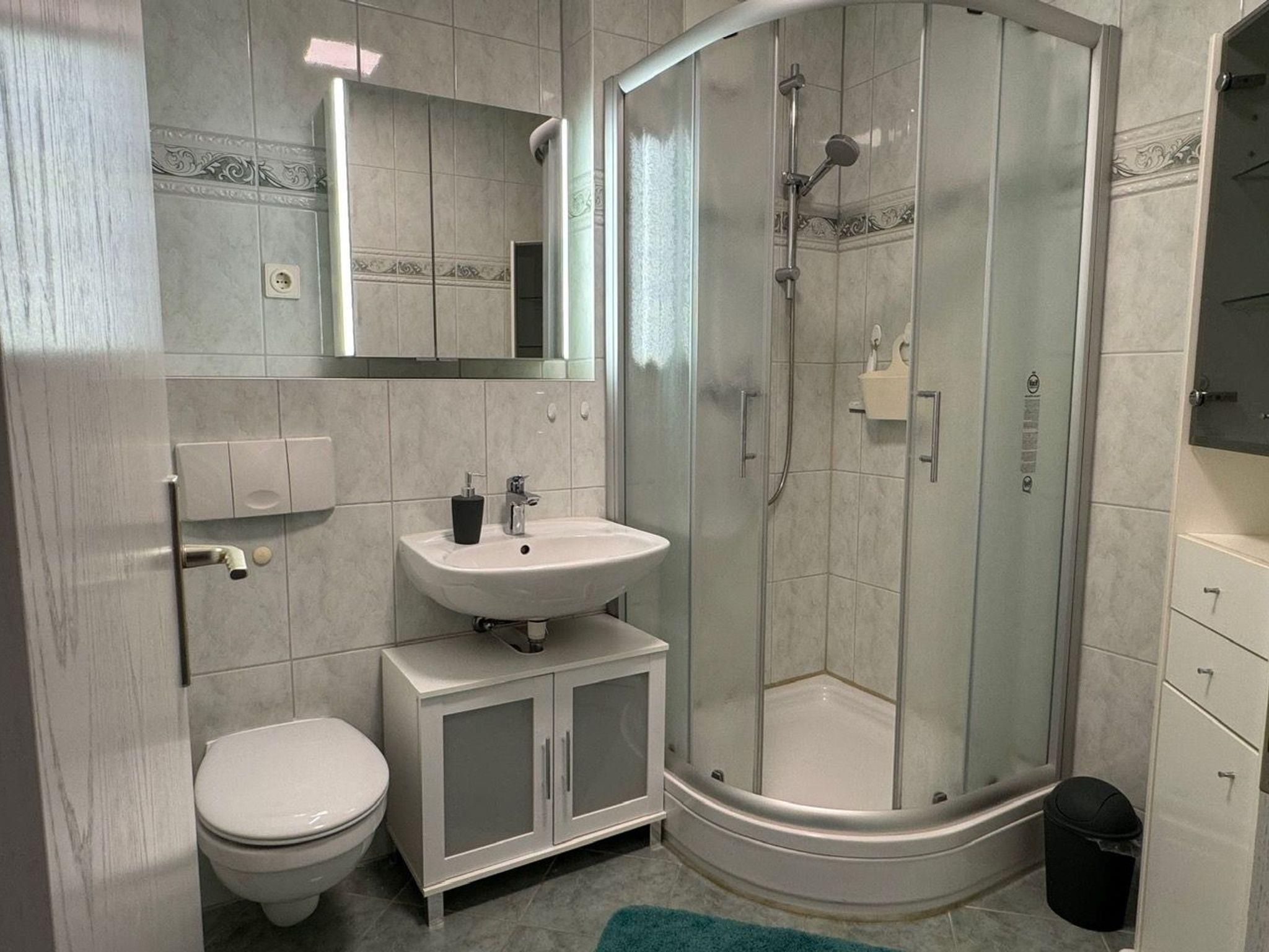 Das separate Badezimmer ist mit einer Dusche und WC ausgestattet und sorgt für zusätzlichen Komfort. Für Unterhaltung und Gemütlichkeit sorgen ein Smart-TV sowie eine Heizung, die die Wohnung auch in der kühleren Jahreszeit zu einem angenehmen Rückzugsort macht.