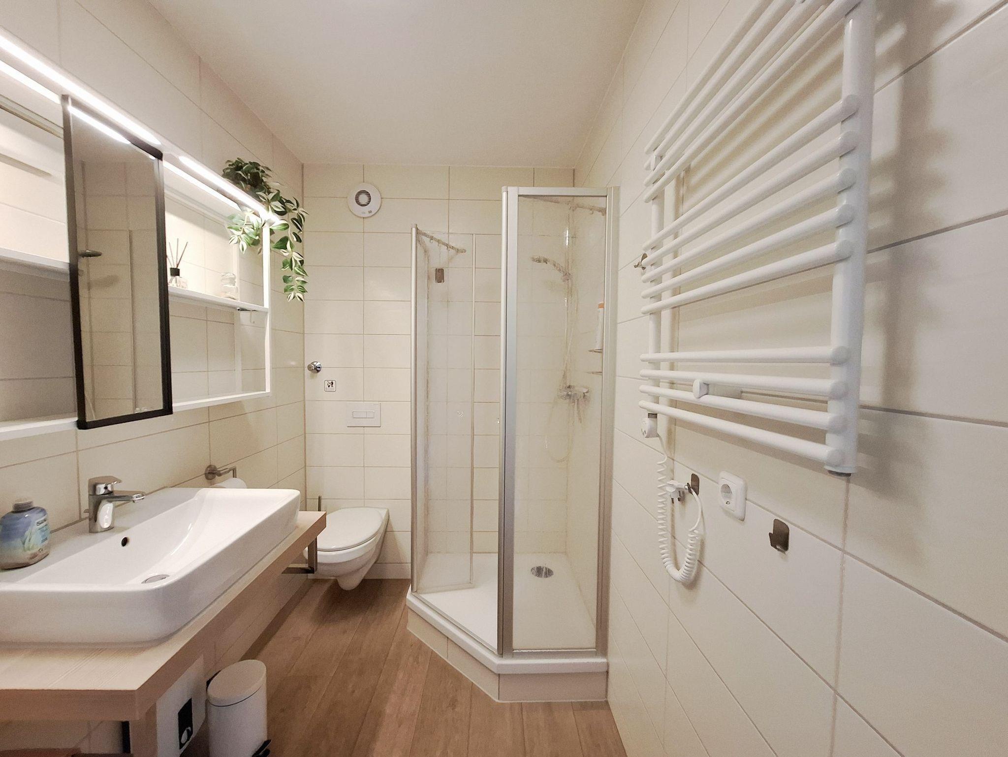 Die geschmackvoll eingerichtete Ferienwohnung wurde im Jahr 2024 komplett renoviert und neu möbliert. Sie ist für bis zu 3 Personen und 1 Baby geeignet und verfügt über ein Wohnzimmer mit gemütlicher Eck-Couch (ausziehbar) und einen Flachbild-Fernseher. Die ins Wohnzimmer integrierte Küche ist voll ausgestattet mit einem Geschirrspüler, einem Backofen, einer Mikrowelle, einem Ceran-Kochfeld mit Dunstabzugshaube und 4 Platten, Wasserkocher und Kaffeemaschine. Im zweckmäßg eingerichteten Schlafzimmer finden Sie das Doppelbett mit 2 einzelnen Matratzen (80 cm x200 cm). Das Badezimmer ist mit einer Dusche, einem Waschbecken und dem WC ausgestattet. Ans Wohnzimmer grenzt der schöne, große Südwest-Balkon (Möbel vorhanden). Für Ihre körperliche Fitness stehen Ihnen Nordic Walking Stöcke, eine Yogamatte und Terrabänder zur Verfügung (ohne Gewähr). Eine Auswahl an Spielen und Büchern ist außerdem vorhanden. Ein höhenverstellbarer Laptop-Tisch ermöglicht Ihnen ein mobiles Arbeiten im Urlaub. Zur Unterkunft gehört zudem der kostenfreie WLAN-Zugang, ein Kinderstuhl und ein Reisebettchen, ein Fahrradschuppen sowie ein PKW-Parkplatz.