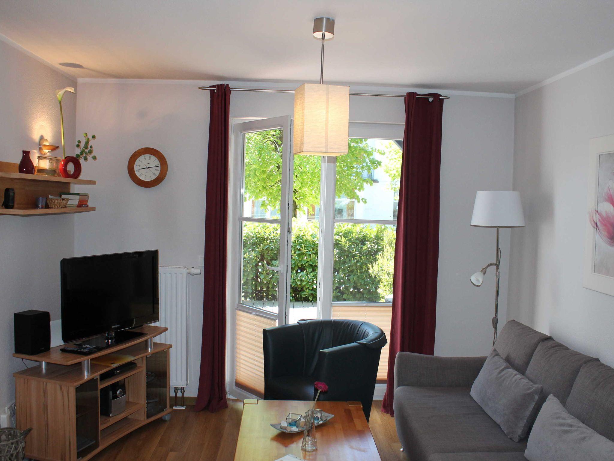 Nette 2-Raum-FeWo 50 qm, mit hellen Holzmöbeln eingerichtet. Im Wohnbereich finden Sie eine vollausgestattete Küchenzeile (Geschirrspüler, Cerankochfeld und Backofen, Kühlschrank mit Gefrierfach, Mikrowelle, Toaster, Kaffeemaschine und Wasserkocher) sowie ein ausziehbares Funktionssofa (Liegefläche nicht geteilt 160 x 200 cm), SAT-TV, CD-Radio vor. Im 15 qm großen Schlafzimmer befindet sich ein Doppelbett mit Kaltschaummatratzen sowie genügend Stauraum.