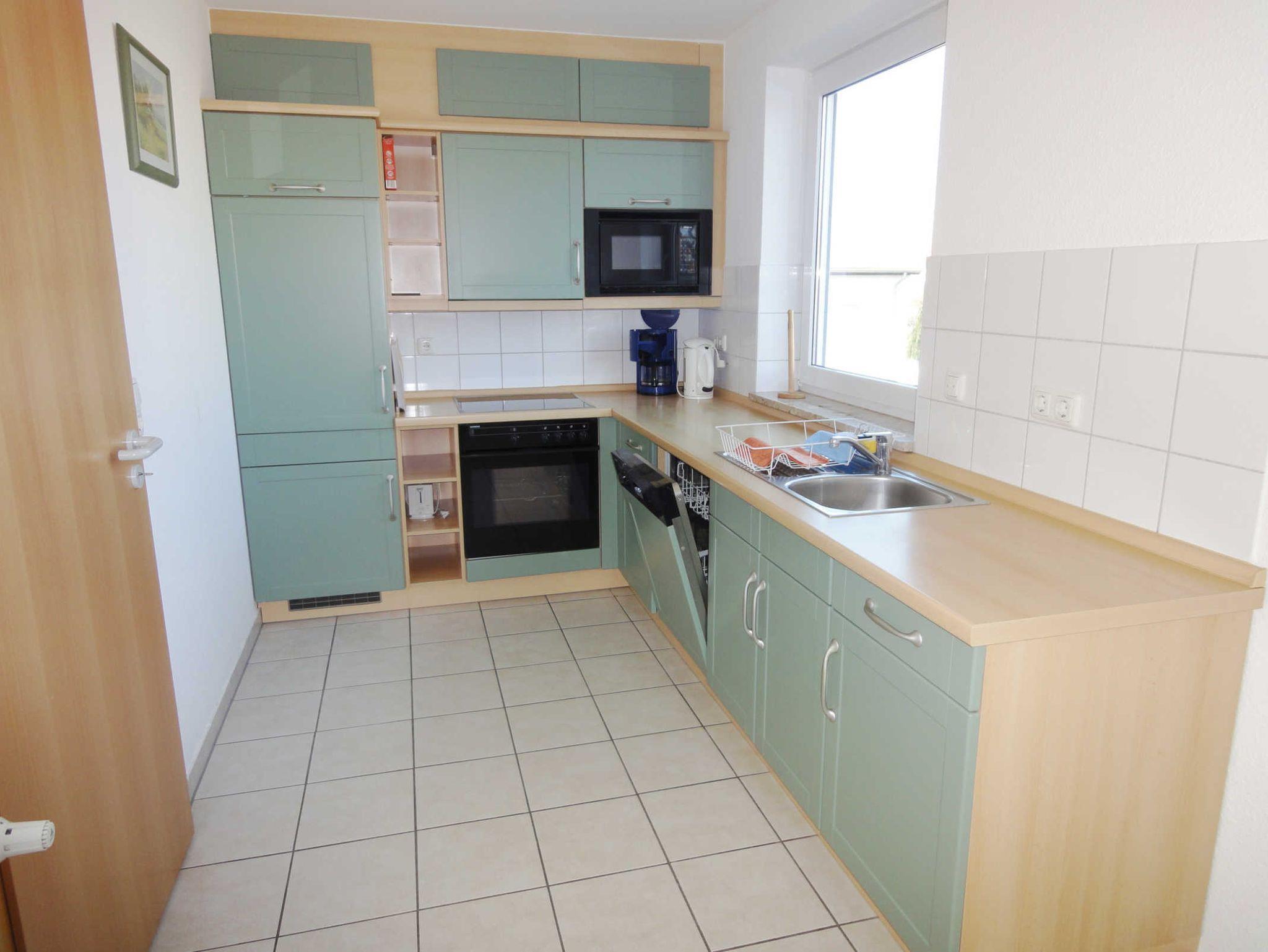 Die separate Küche ist komplett ausgestattet unter anderem mit einem Kühlschrank, einem Geschirrspüler, einem Herd mit 4 Platten und einer Backröhre sowie einer Kaffeemaschine und einem Wasserkocher.