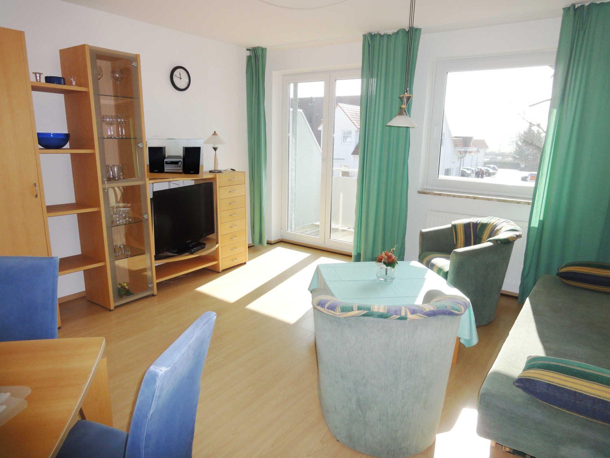 Zur Ferienwohnung gehören ein Süd-Balkon und ein PKW-Stellplatz.