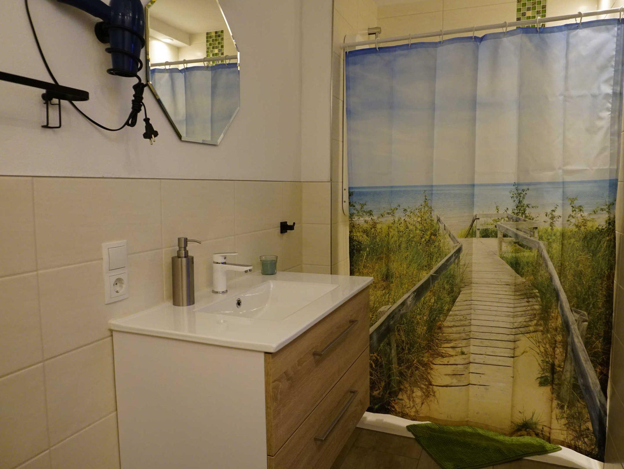 In dieser sehr geschmackvoll eingerichteten Ferienwohnung können Sie sich wie zu Hause fühlen. Über eine kleine, nach unten führende Treppe gelangen Sie in diese neue Ferienwohnung, welche Sie über einen kleinen Flur ins Wohnzimmer führt (Souterrain). Dieses ist mit einer gemütlichen Couch und einer kleinen Ess-Ecke für 3 Personen ausgestattet. Eine gut eingerichtete, offene Küche mit 2 Kochplatten, Geschirrspüler, Wasserkocher und Kaffeemaschine wartet auf ihren Urlaubs-Einsatz. Das gemütliche Schlafzimmer verfügt über ein Doppelbett und ein Schrankbett. Im Bad befinden sich ein WC und eine Dusche. Zu Ihrer Ferienwohnung gehören ein PKW-Stellplatz und ein Fahrrad-Abstellplatz für Ihre mitgebrachten Fahrräder.