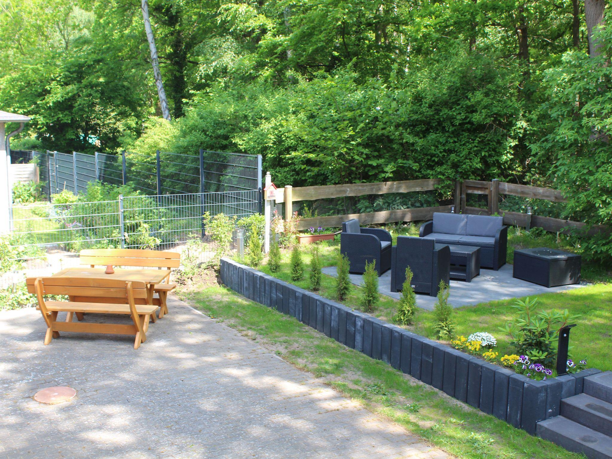• eine gemütliche Sitz- und Grillecke hinterm Haus, lädt an warmen Abenden zum Verweilen ein