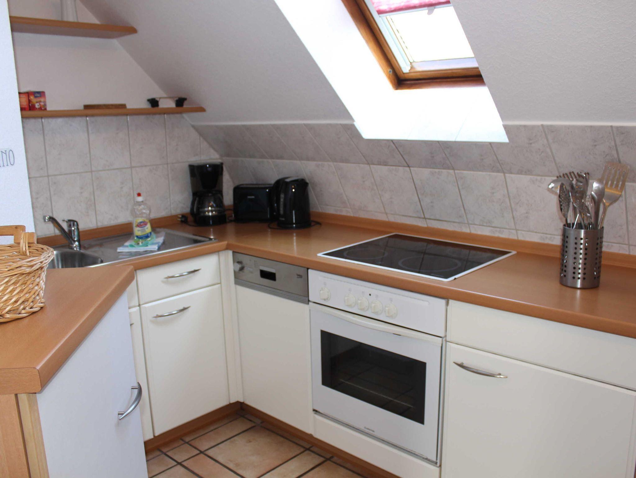 • moderne Einbauküche mit Geschirrspüler, Backofen und Kochfeld, Kühlschrank mit Gefrierfach, usw.