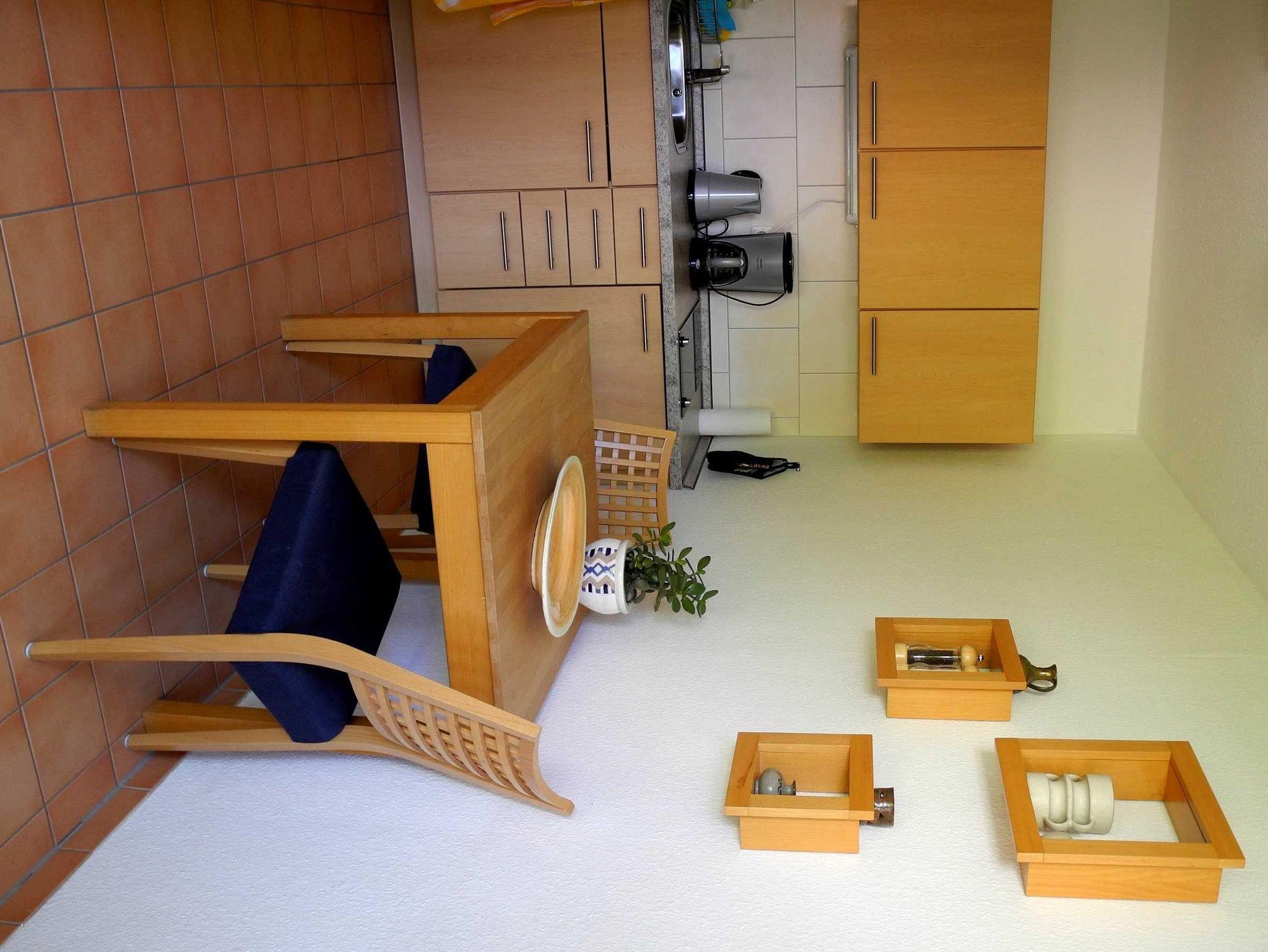 Die Küchenzeile ist mit einem Zweiplattenkocher ( Ceranfeld), Kühlschrank mit Gefrierfach, Toaster, Kaffeemaschine und Wasserkocher ausgestattet. Im Außenbereich steht Ihnen ein Grill, Sonnenschirm, Tisch und Stühle mit Auflagen zur Verfügung. Sie können dort separat und in Ruhe verweilen umgeben von grüner Hecke und Bepflanzungen.