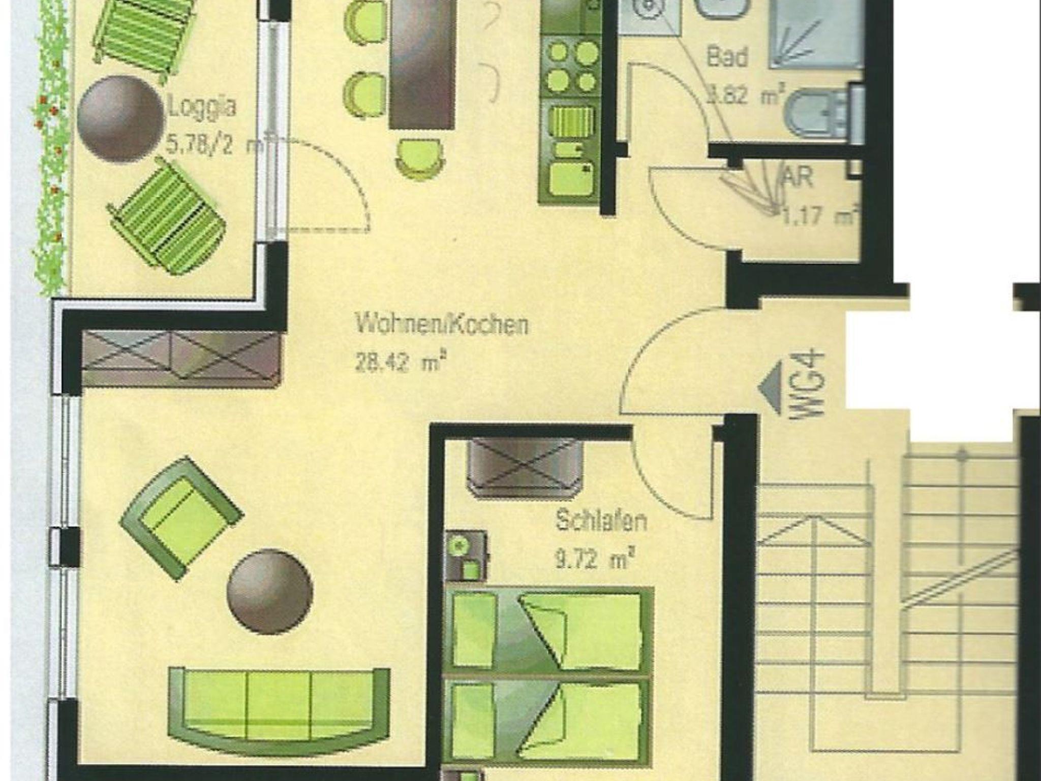 • Loggia: Südausrichtung, mit Tisch und 3 Stühle