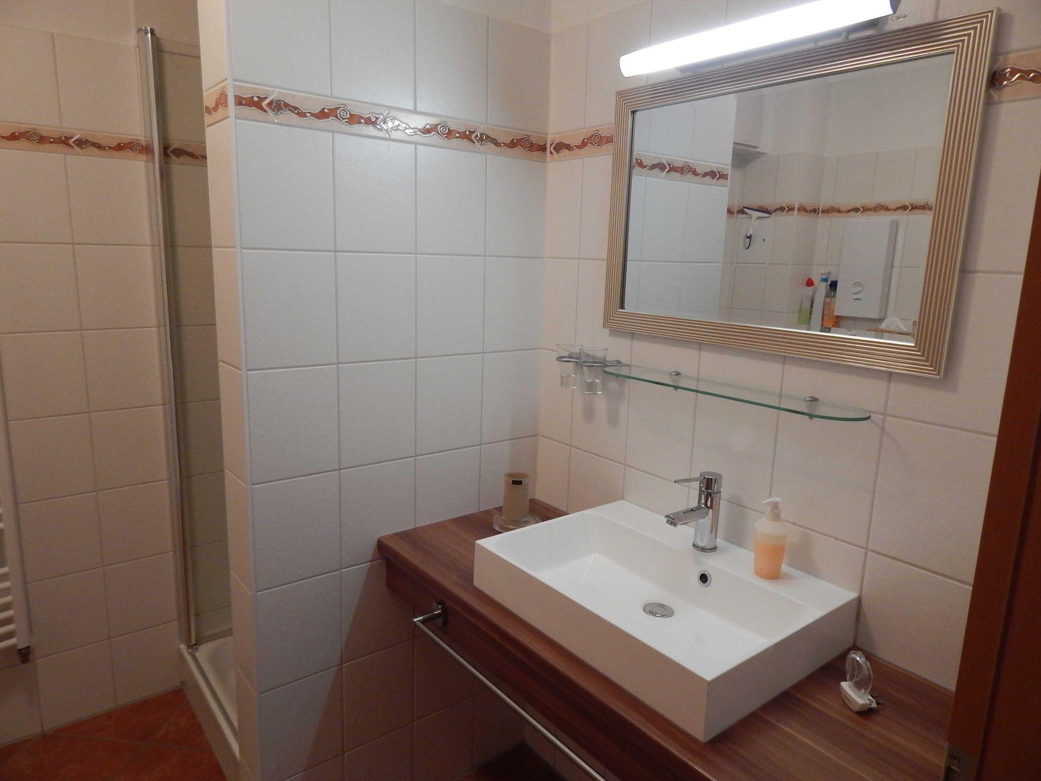 Die Ferienwohnung befindet sich im Parterre eines Mehrferienappartementhauses mit einer Süd-West-Terrasse. Ein PKW-Stellplatz auf dem Grundstück und ein Fahrradabstellraum (jeweils Nr. 10) stehen zur Verfügung. Die Wohnung befindet sich ca. 100 m vom Aquadrom entfernt.