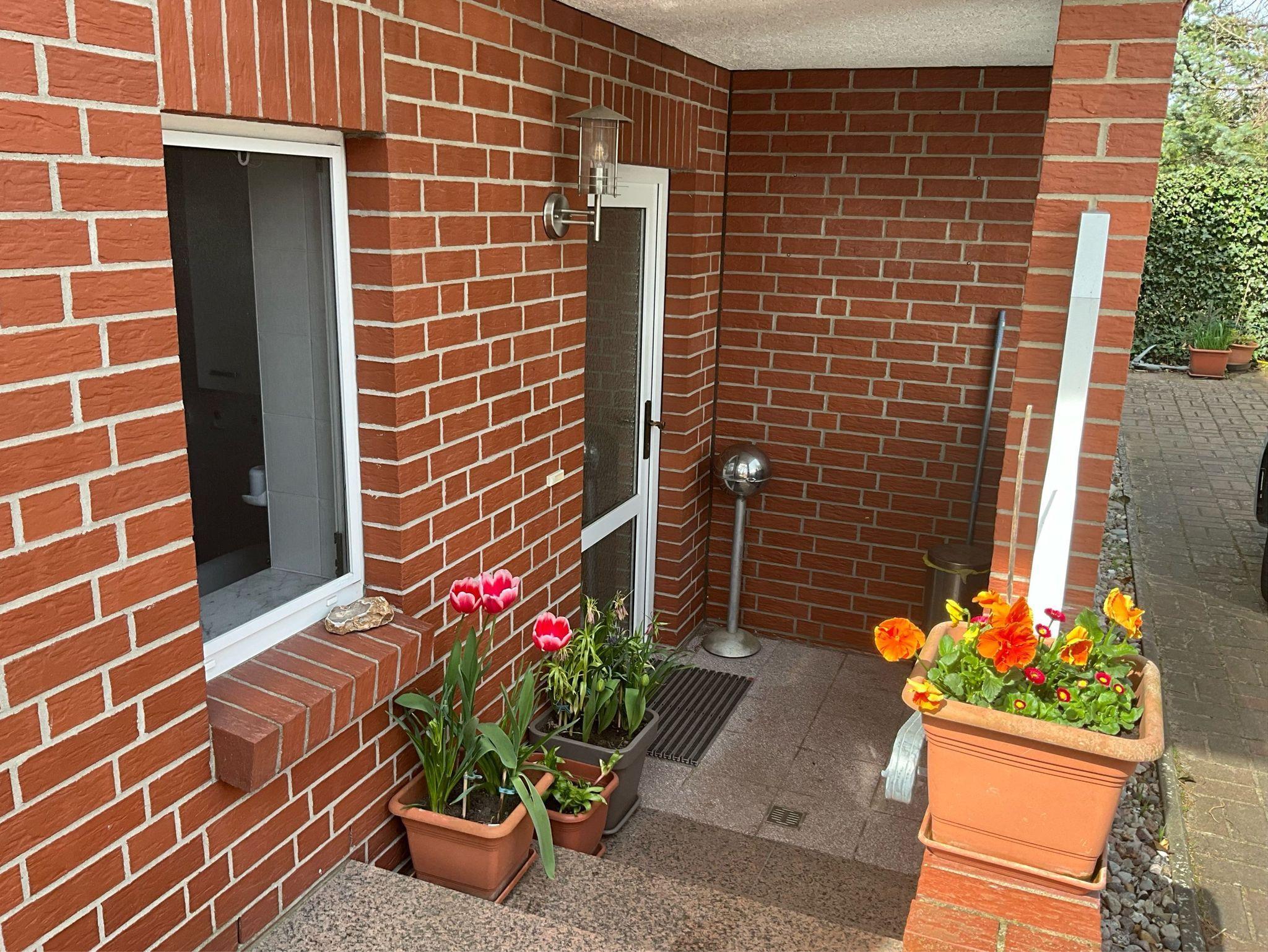 FEWO im Massivbau mit geklinkerten Außenwänden. Am Eingang befinden sich zwei Stufen. Die Innenwände sind tapeziert, im Bad und Hauswirtschaftsraum gefliest. Die FEWO kann mit einem Schlafzimmer mit Doppelbett gemietet werden. Ab drei Gästen steht ein zweites Schlafzimmer mit zwei Einzelbetten zur Verfügung.