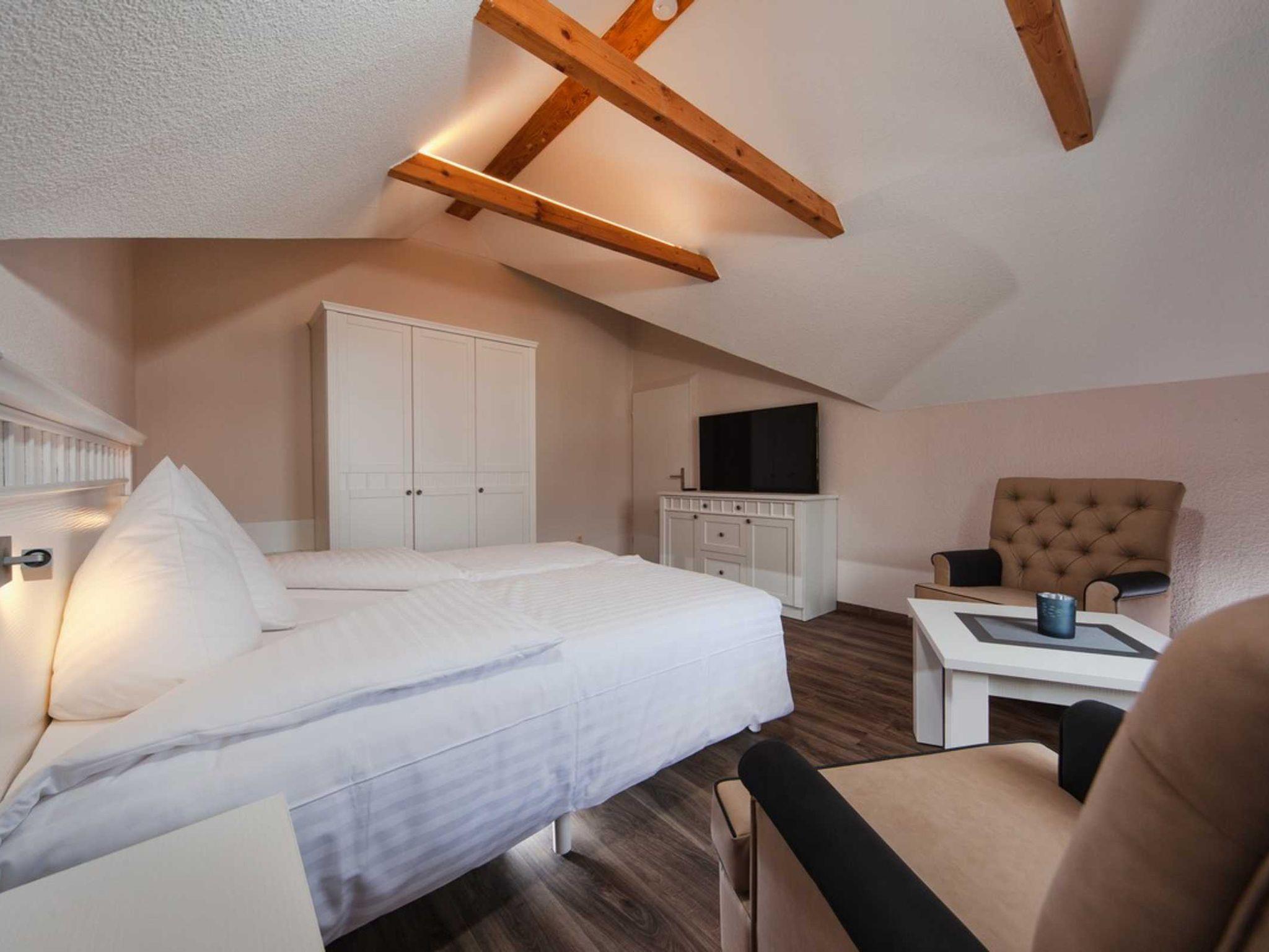 Ein lauschiges Urlaubsnest für 2 Personen. Dieses Appartement, direkt unterm Dach, bietet unseren Feriengästen einen kombinierten Wohn- und Schlafbereich mit zwei gemütlichen Sesseln, eine vollausgestattete Küche mit Essplatz für ein gemütliches Mahl sowie ein Badezimmer mit Dusche, Waschtisch, WC, Handtuchheizkörper und Föhn.