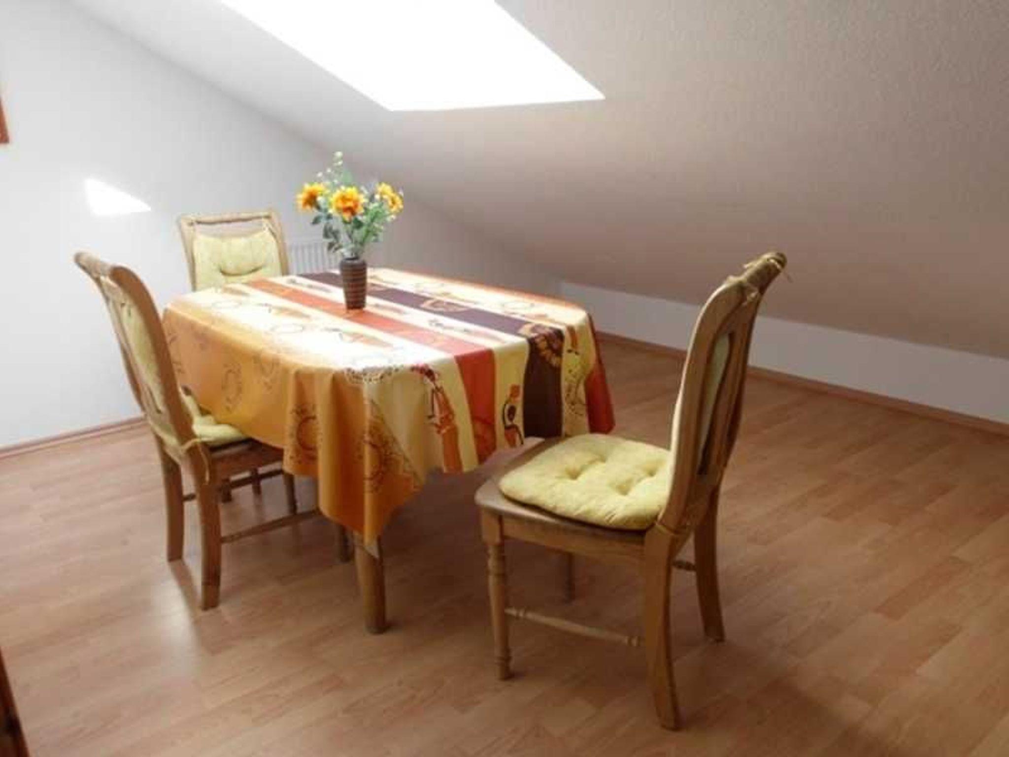 Die gemütliche, helle und freundliche Dachgeschosswohnung befindet sich im 2. OG eines im Bäderhausstil im Jahre 2005 erbauten Appartmenthauses. Die 53 qm große Wohnung verfügt über einen großzügigen Wohnbereich, zwei räumlich getrennte Schlafzimmer, jeweils mit pflegeleichtem Laminatfußboden und ein großes Bad. Im Eingangsbereich des Wohnraumes befindet eine gut ausgestattete Küchenzeile mit Geschirrspüler, Herd mit Backofen, Mikrowelle und Kühlschrank. Toaster, Kaffeemaschine, Wasserkocher und -für die schnelle Reinigung zwischendurch- ein Staubsauger sind selbstverständlich vorhanden. Im Wohnbereich befinden sich eine räumlich separierte Essecke unter einem großen Fenster mit schönem Panorama und eine großzügige Couchlandschaft, die zum Verweilen und Ausruhen einlädt. Sat- TV, DVD Player und Mini- Stereoanlage sind ebenfalls vorhanden.