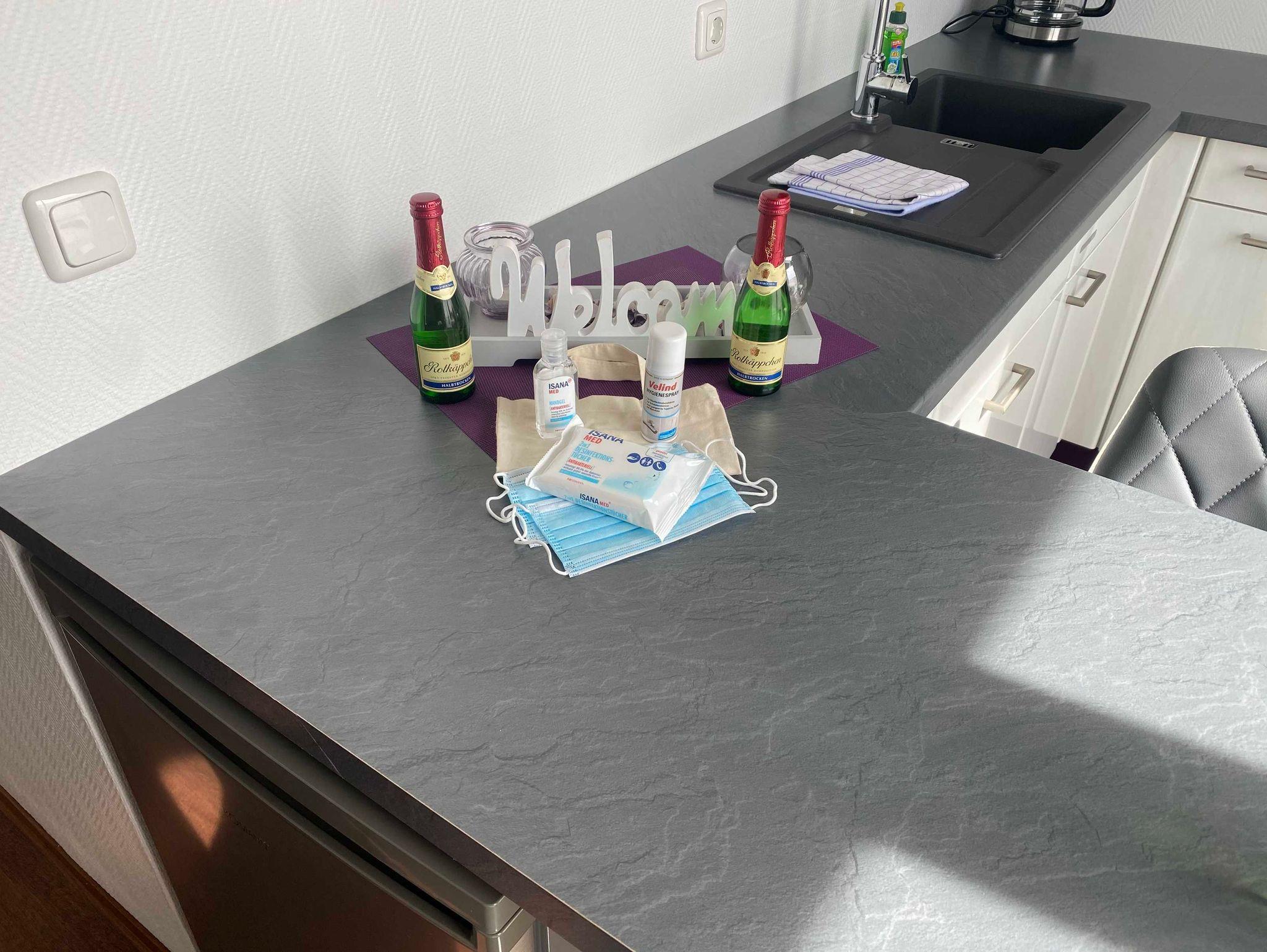 Die Ferienwohnung ist geschmackvoll und hochwertig eingerichtet. Das separate Schlafzimmer bietet Ihnen ein bequemes Doppelbett und Ablagemöglichkeiten. Das Wohnzimmer mit großem Ecksofa, das zur Schlafcouch umgewandelt werden kann sowie eine offene Wohnküche mit moderner Einbauküche laden zum Verweilen ein. Das Badezimmer ist mit Dusche und WC ausgestattet.