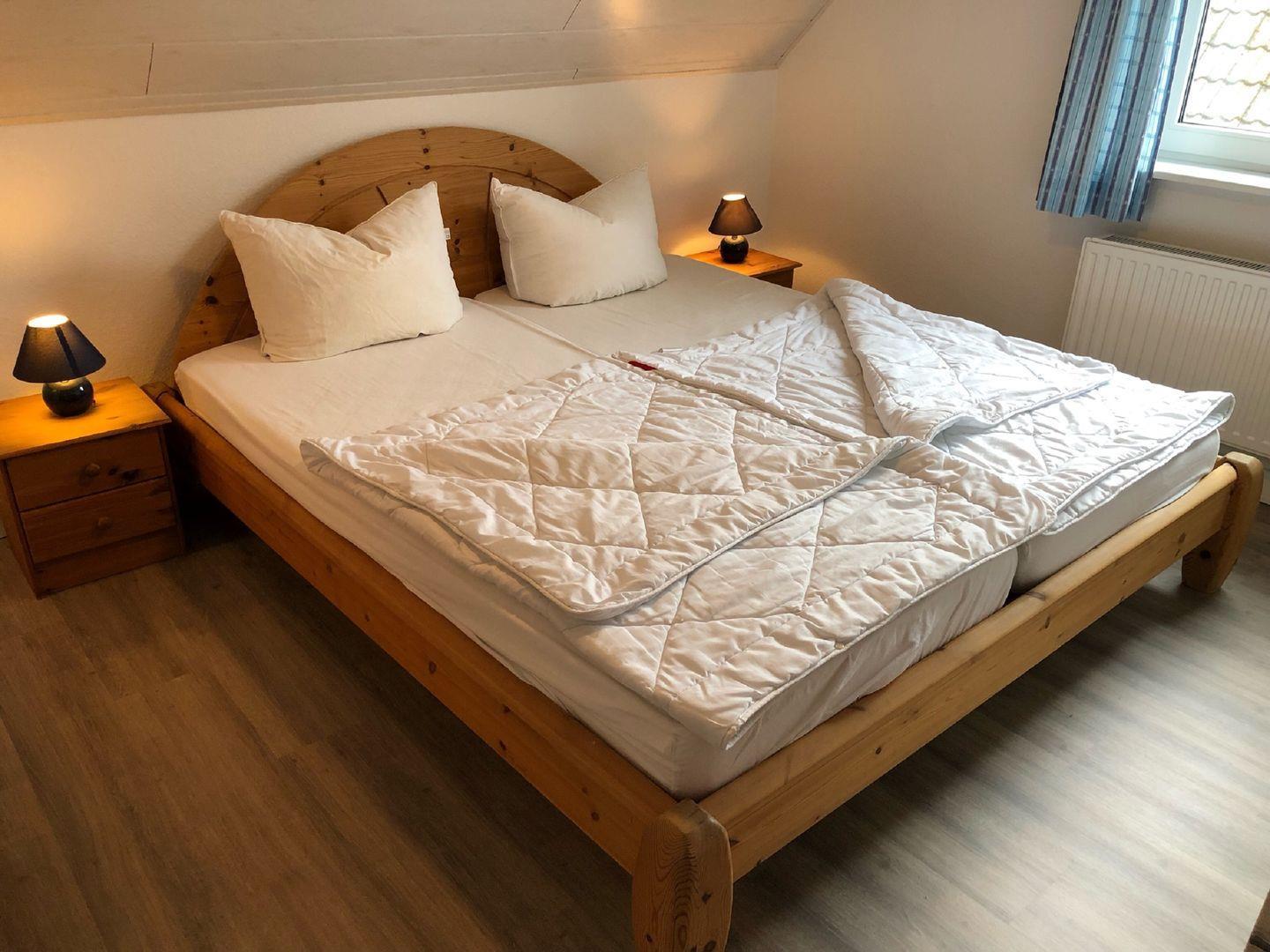 Im 1. Stock befinden sich 1 Schlafzimmer mit Ehebetten, 1 Schlafzimmer mit 2 Einzelbetten und ein Bad mit Dusche /WC.