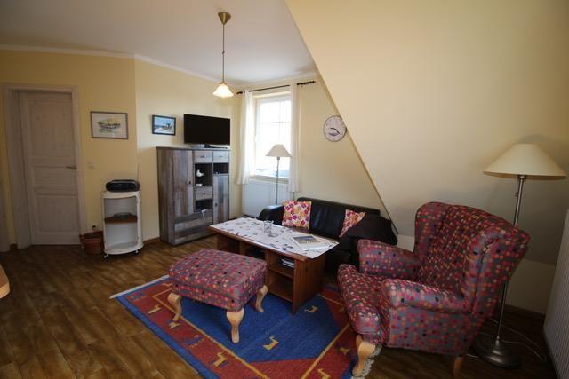 Moderne und mit viel Liebe zum Detail eingerichtete Ferienwohnung mit ca. 38 m² Wohnfläche, für 2 Personen im 1. OG. Eigener Zugang. Wohnzimmer mit Küchenzeile, Spülmaschine und Mikrowelle. W-LAN inklusive .Kleines Schlafzimmer, geräumige Du/WC. Bettwäsche ab 10 Tage inklusive.