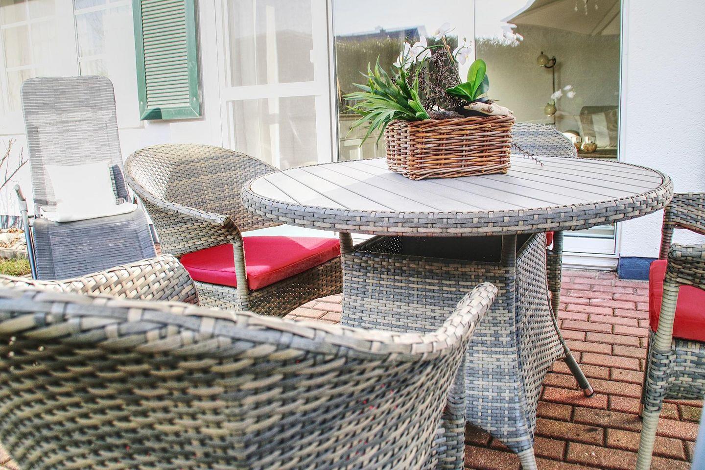 Genießen Sie die frische Luft auf der hellen 12 m² großen Terrasse, wo Gartenmöbel und Sonnenschirme bereitstehen – ideal für entspannte Stunden in der Sonne oder gesellige Grillabende. Bei Bedarf können Sie die bereitgestellten Sonnenliegen nutzen, um sich nach einem erlebnisreichen Tag am Strand zu erholen.