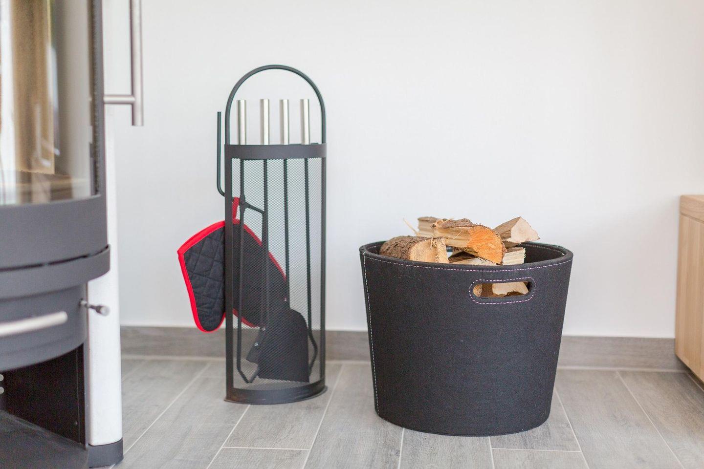 Ein großzügiger Wohnraum mit Wohn-/Essbereich mit LED-TV, W-LAN, Radio/CD und Kaminofen (Holz ist nicht inklusive) sowie einer kompletten Einbauküche lässt keine Wünsche offen.