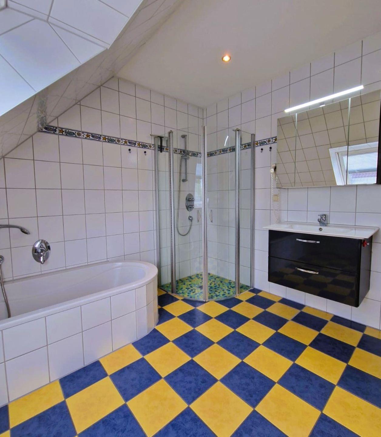Die beiden Badezimmer sind mit bodengleichen Duschen/WC und Fön ausgestattet. Zusätzlich gibt es noch in einem Bad eine Badewanne.