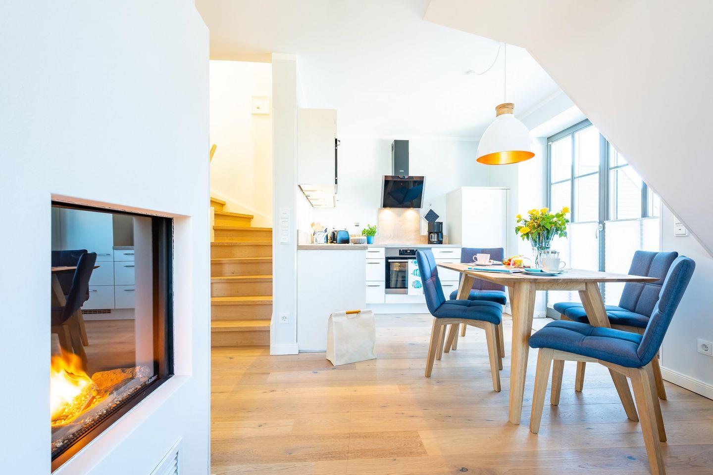 Die Küche verfügt über einen Induktionsherd, Backofen, Kühlschrank mit Gefrierfach, Spülmaschine und vieles mehr. Eine Kaffeemaschine (Kapselmaschine Cafissimo v. Tchibo) und ein Wasserkocher stehen bereit!