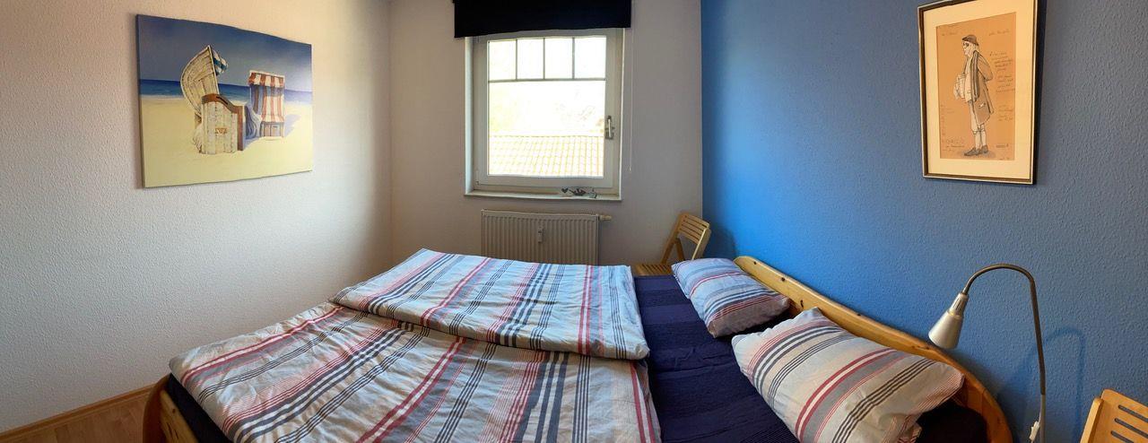 Ein Schlafzimmer ist mit einem Ehebett ausgestattet und ein Schlafzimmer mit zwei Einzelbetten.