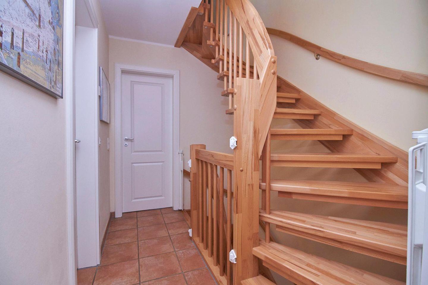 Im ersten Schlafzimmer im OG befindet sich ein Doppelbett (180 x 200 cm) mit zwei getrennten Matratzen. Das zweite Schlafzimmer im 1. OG verfügt ebenfalls über ein Doppelbett (180 x 200 cm) mit zwei getrennten Matratzen, einen großen Kleiderschrank, eine kleine Couch und einen Kindertisch.