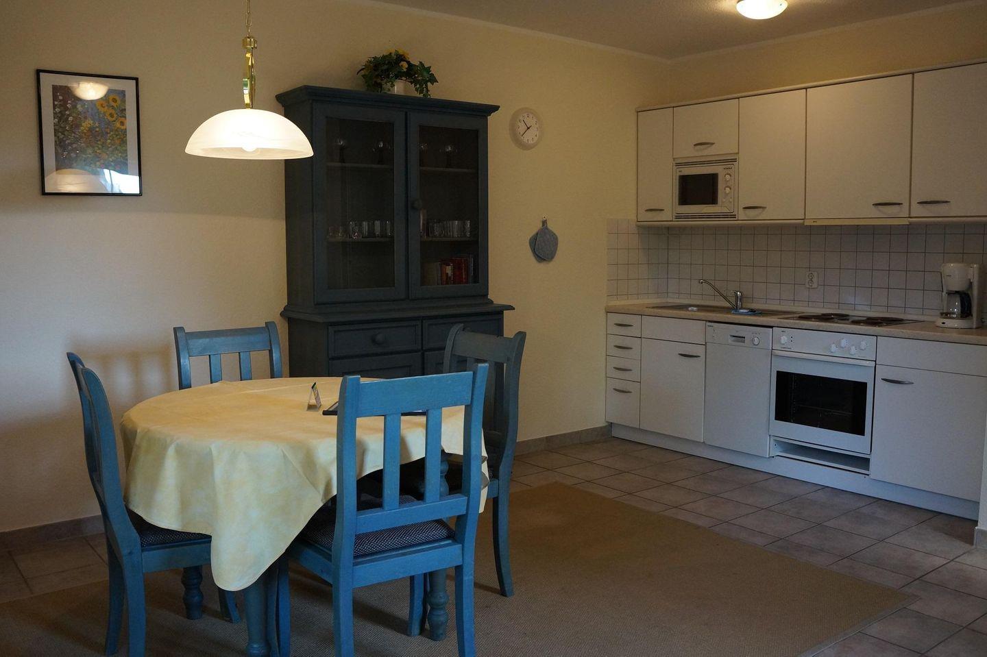 Gemütliche Ferienwohnung in einem Appartementhaus in Strandnähe, ca.50 m², EG, Terrasse, Wohnzimmer mit komplett ausgestatteter Küchenzeile, Schlafcouch, SAT-TV, Schlafzimmer mit Ehebett, Dusche/WC, Fön, Bettwäsche und Handtücher bitte mit bringen, 1 PKW-Stellplatz Nr. 21 und Fahrradraum vorhanden. Haustiere nicht erlaubt, Nichtraucherwohnung, der Starnd ist ca. 200 m entfernt.