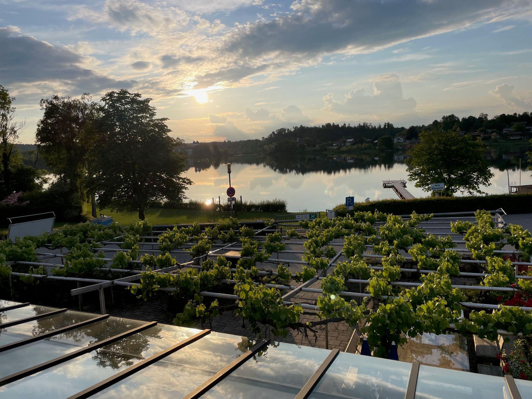 • Beste Aussicht: Blick auf den Klostersee bei abendlichem Sonnenuntergang.