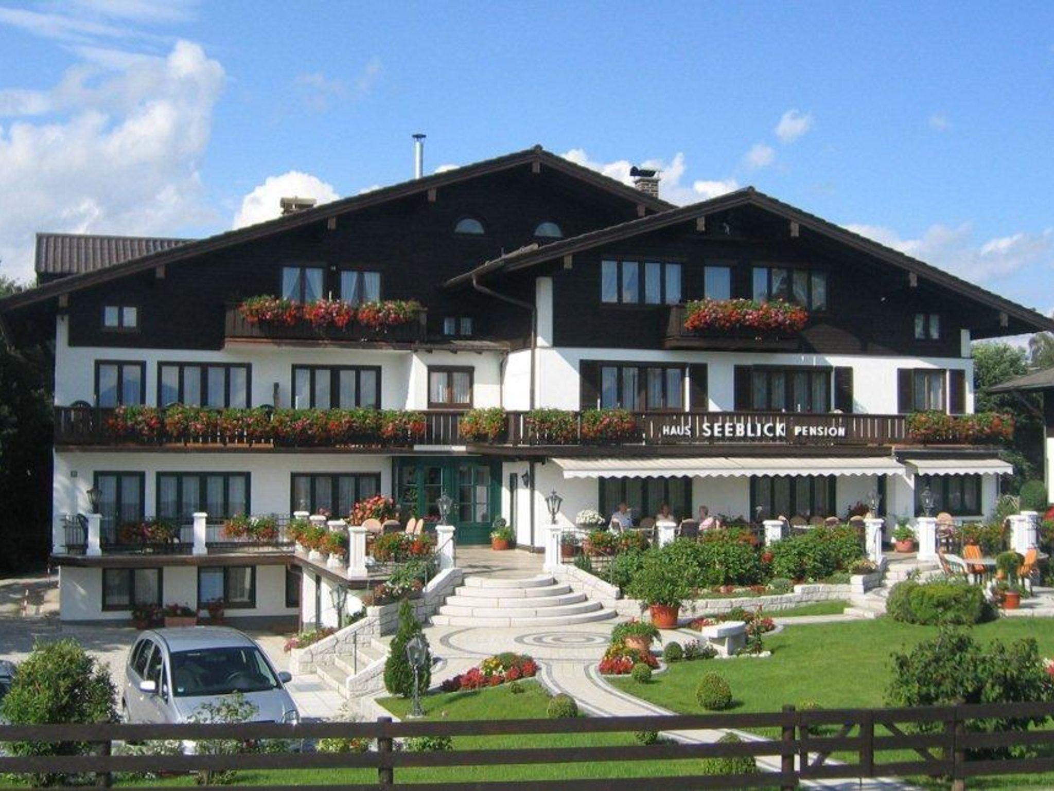 Unser Haus liegt direkt am Chiemsee und wir haben einen herrlichen Blick auf die bayerischen Alpen.