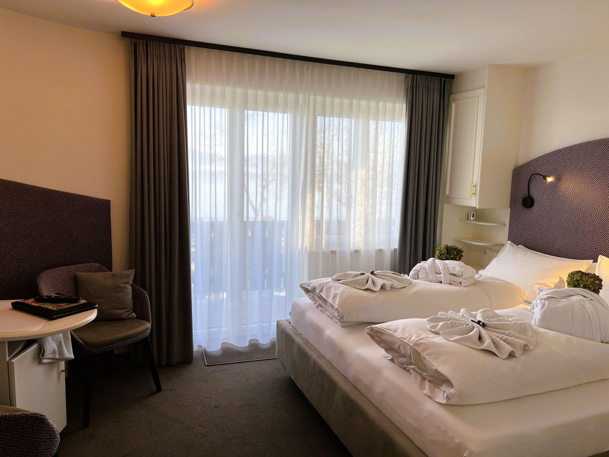 Unsere gemütlich eingerichteten Einzel- und Doppelzimmer verfügen über Dusche/WC, Zimmersafe, Minibar, Radio, TV und haben Balkon oder Terrasse. Zustellbetten auf Anfrage möglich. WLAN im Haus.