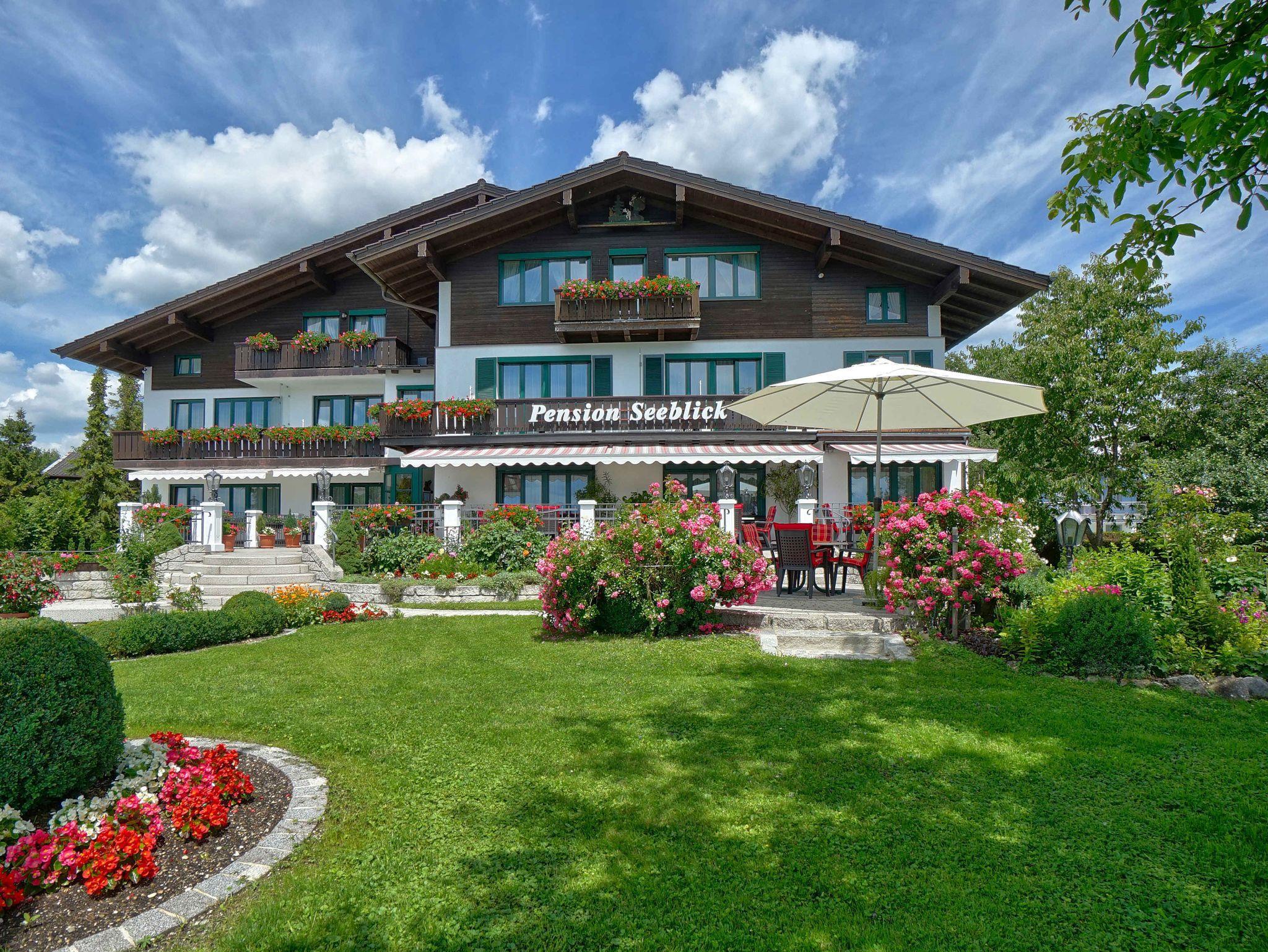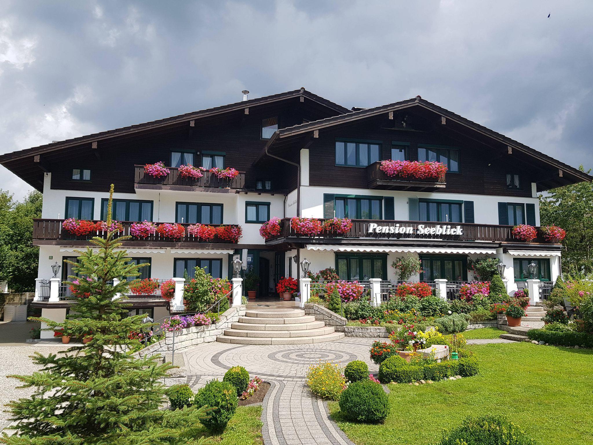 Unser Haus liegt direkt am Chiemsee und wir haben einen herrlichen Blick auf die bayerischen Alpen.