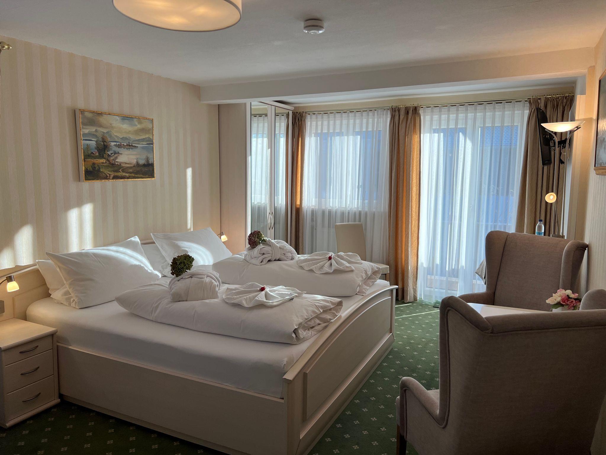 Unsere gemütlich eingerichteten Einzel- und Doppelzimmer verfügen über Dusche/WC, Zimmersafe, Minibar, Radio, TV und haben Balkon oder Terrasse. Zustellbetten auf Anfrage möglich. WLAN im Haus.