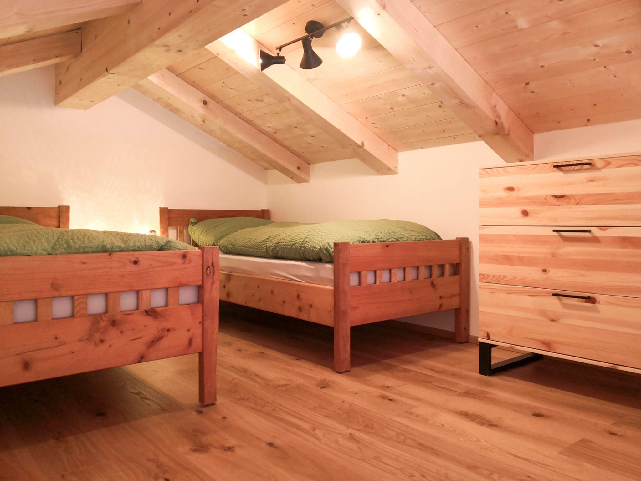 – 1 Schlafgalerie mit zwei Einzelbetten je 90 cm, Kommode