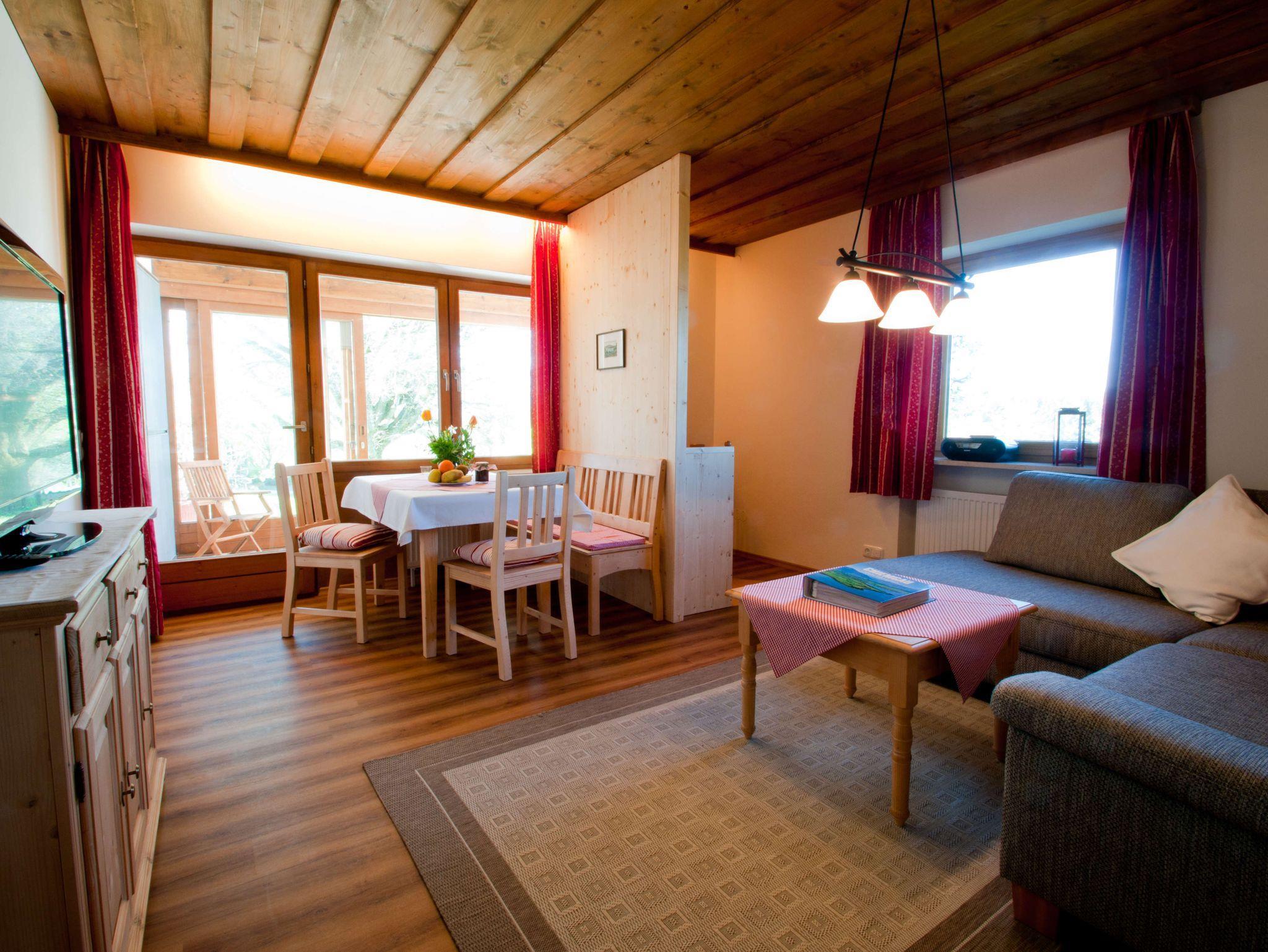 Die komplett neu renovierte Ferienwohnung (2012) bietet einer Familie mit 4 Personen ein einzigartiges Wohnerlebnis. Der herrliche Wintergarten und die Süd-Terrasse laden zum Genießen ein.Die Wohnung umfasst 78 qm (inkl. Wintergarten), liegt im Parterre/Souterrain im Zuhaus, direkt neben dem Bauernhaus.Die Wohnung ist eingeteilt in Diele mit Garderobe, Wintergarten - bei geöffneten Schiebetüren auch als überdachte Südterrasse nutzbar. Vollausgestattete Küche mit Spülmaschine, Wasserkocher, Kaffeemaschine, Backofen, Eierkocher, Toaster, Mikrowelle/Grill, Pürierstab, Kindergeschirr- und Besteck.Großes Wohnzimmer mit Essgruppe, Couchecke und TV. Ein Schlafzimmer mit Doppelbett im Parterre (Zustell- oder Kinderbett möglich). Ein Schlafzimmer im Souterrain (vom Wohnzimmeraus über eine Wendeltreppe mit Kindersicherung zu begehen) mit romantischem Himmelbett. Badezimmer mit Dusche und WC, sowie einem zusätzlichem WC. Kleinkinderaussrüstung bei Bedarf.