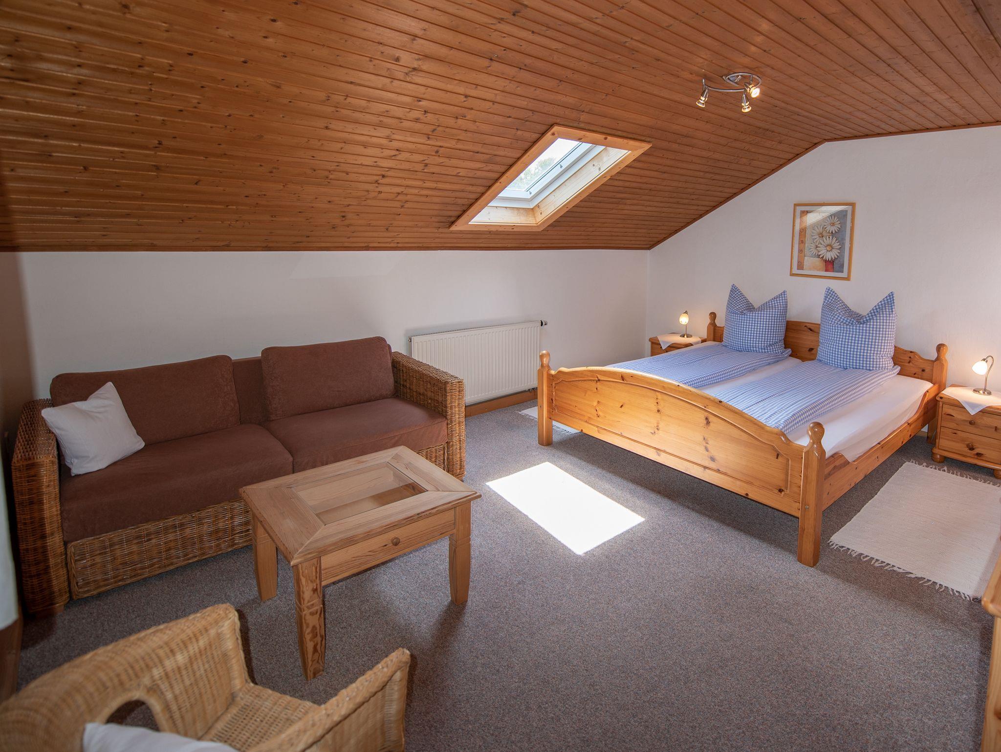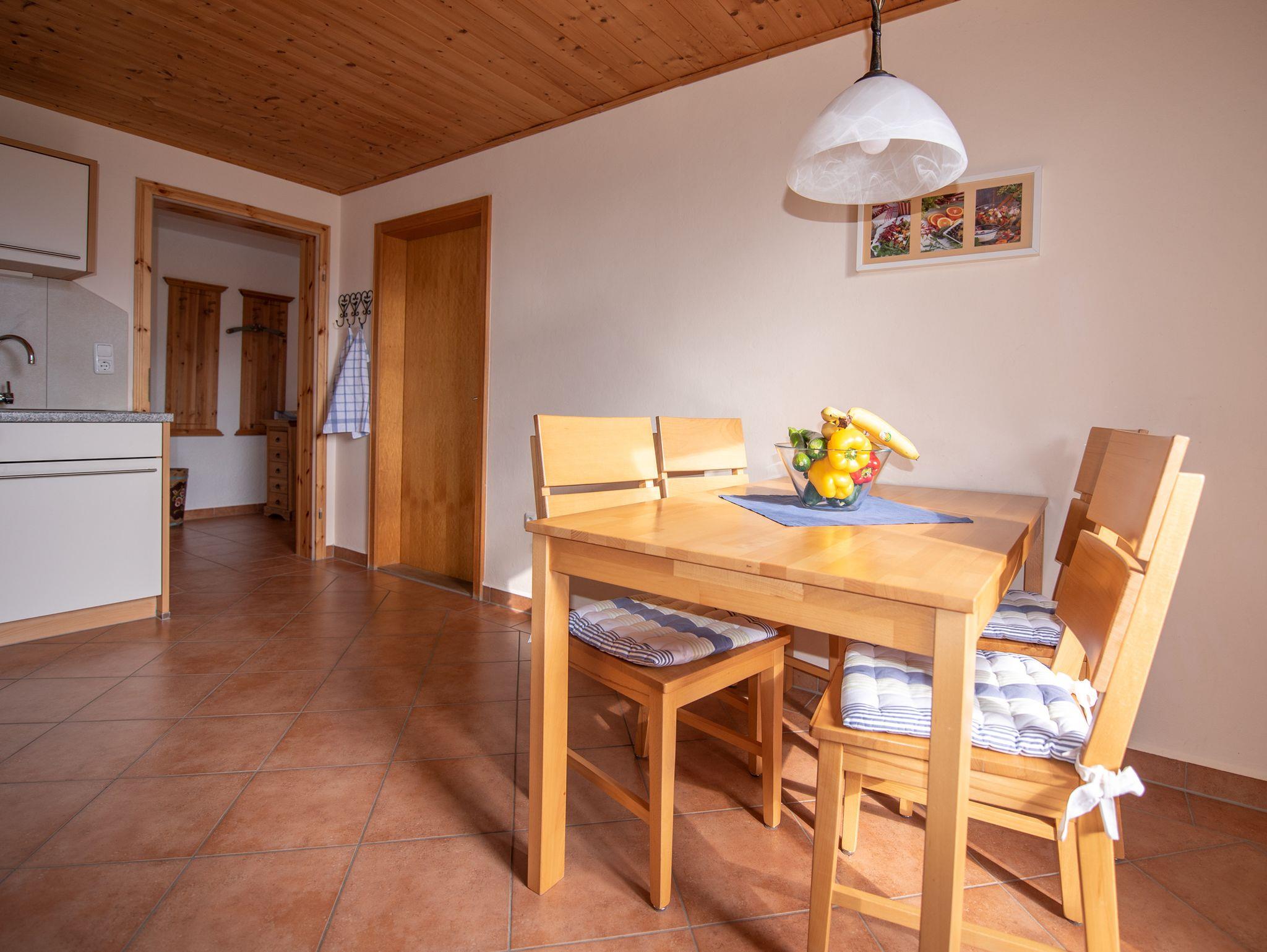 Die Ferienwohnung ist für bis zu 5 Personen eingerichtet. Im zweiten Stock befindet sich ein großes Bad mit Dusche/ WC, eine geräumige und voll ausgestatteten Wohnküche mit Balkon. Der Balkon ist sichtgeschützt und nur über die Ferienwohnung erreichbar. Die beiden Schlafräume sind über die Wohnküche erreichbar. Der Fernseher befindet sich im großen Schlafraum.