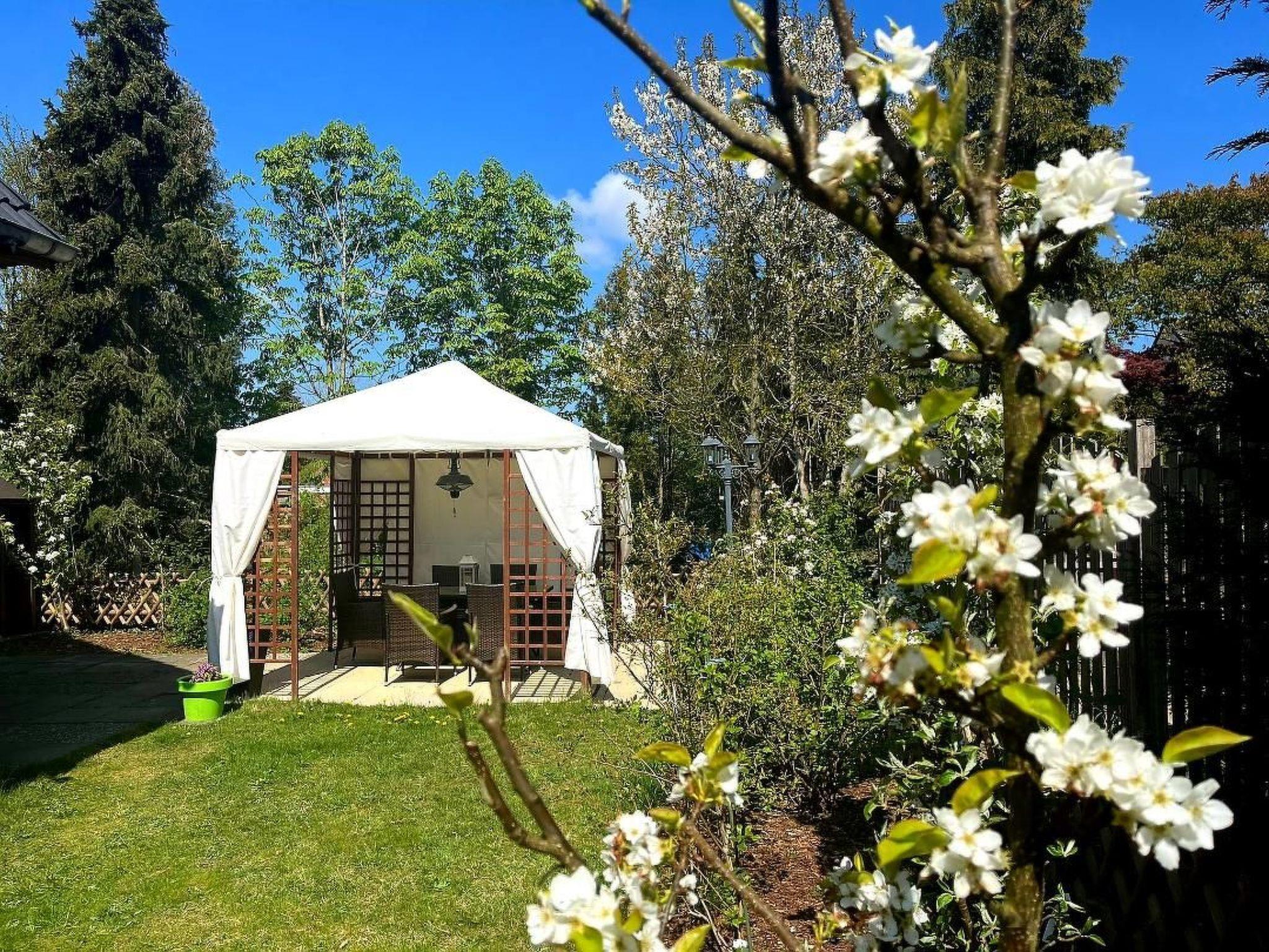 The outdoor area perfectly complements the feel-good ambience of this holiday flat. Enjoy relaxing days in the garden, which is for your sole use and has comfortable garden furniture, a barbecue and a charming pavilion to relax and enjoy. The spacious terrace is the ideal place for an extended breakfast in the open air or cosy evenings in convivial company.