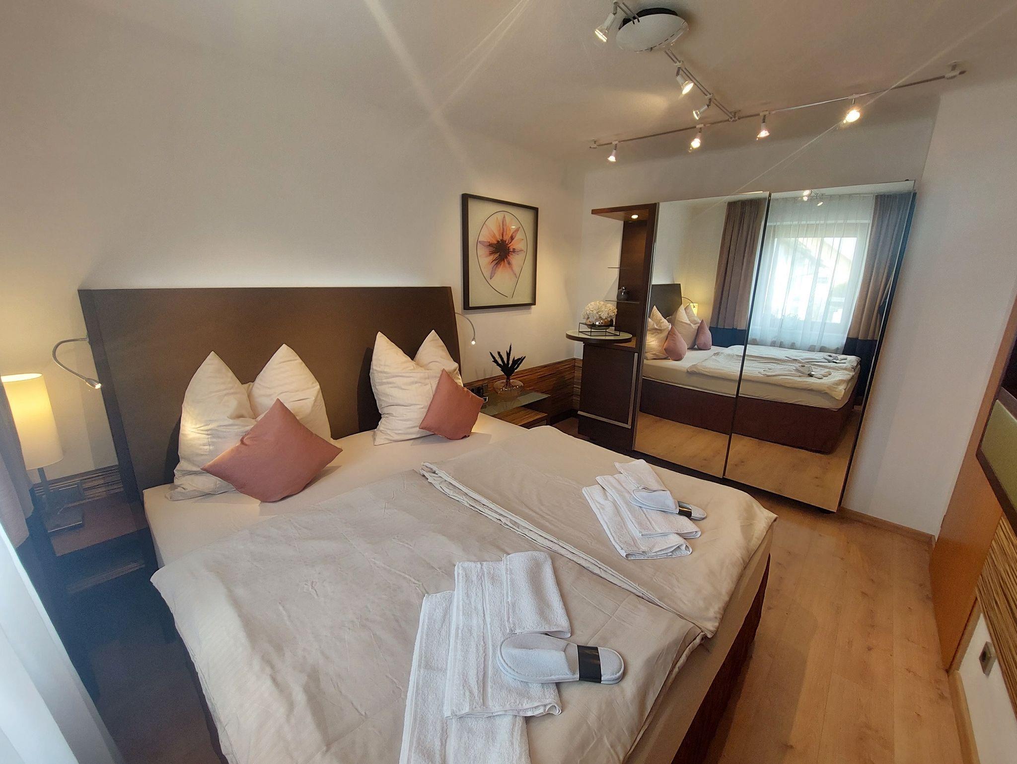 Damit Sie wieder fit und erholt am nächsten Tag durchstarten können, verfügt das Schlafzimmer über ein hochwertiges Hotel-Boxspringbett 180x210cm mit Tonnentaschenfederkernmatratzen für einen erholsamen Schlaf.
