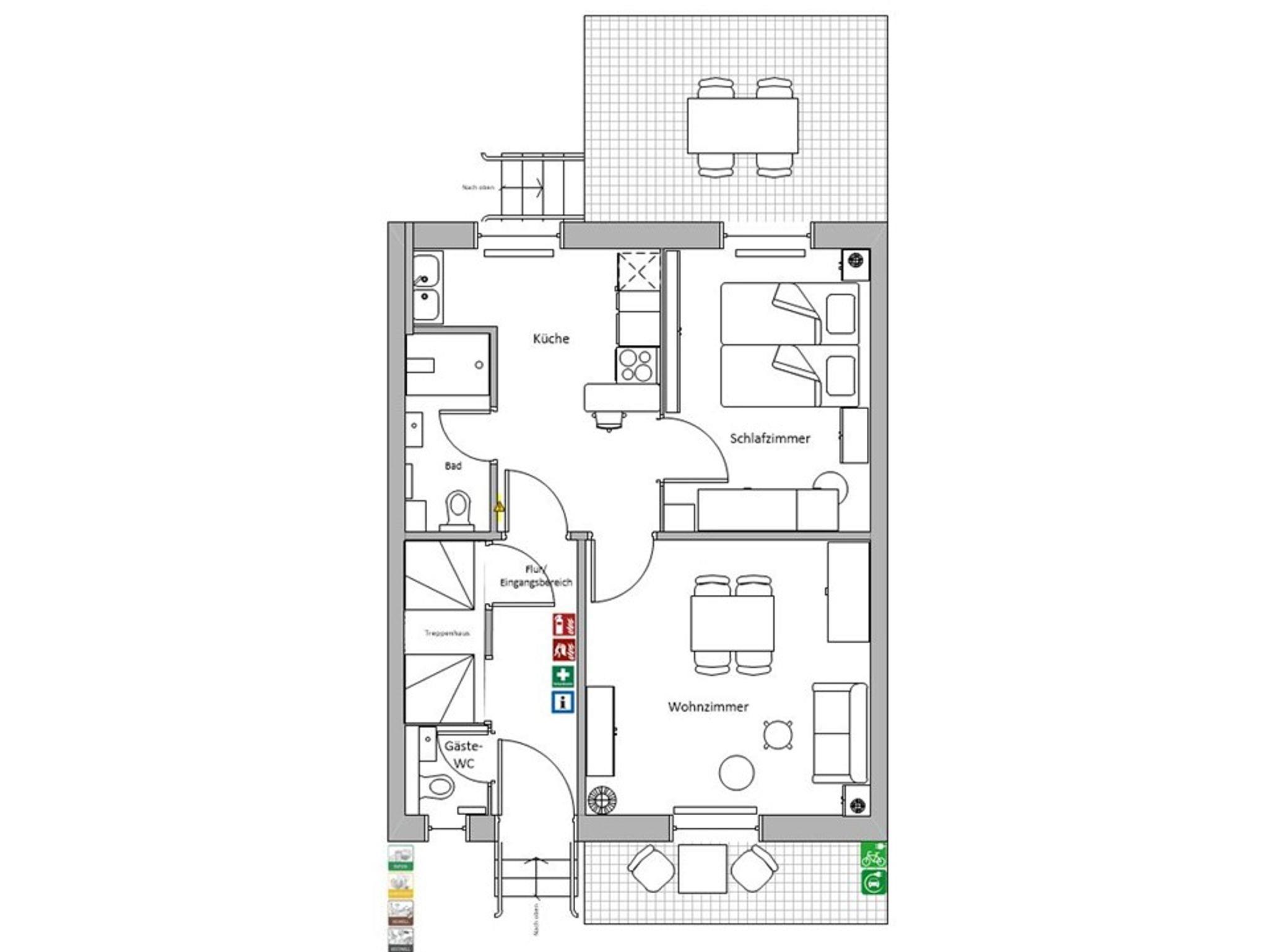 Ein weiteres Gäste-WC steht auf der Etage zur allgemeinen Benutzung zur Verfügung.