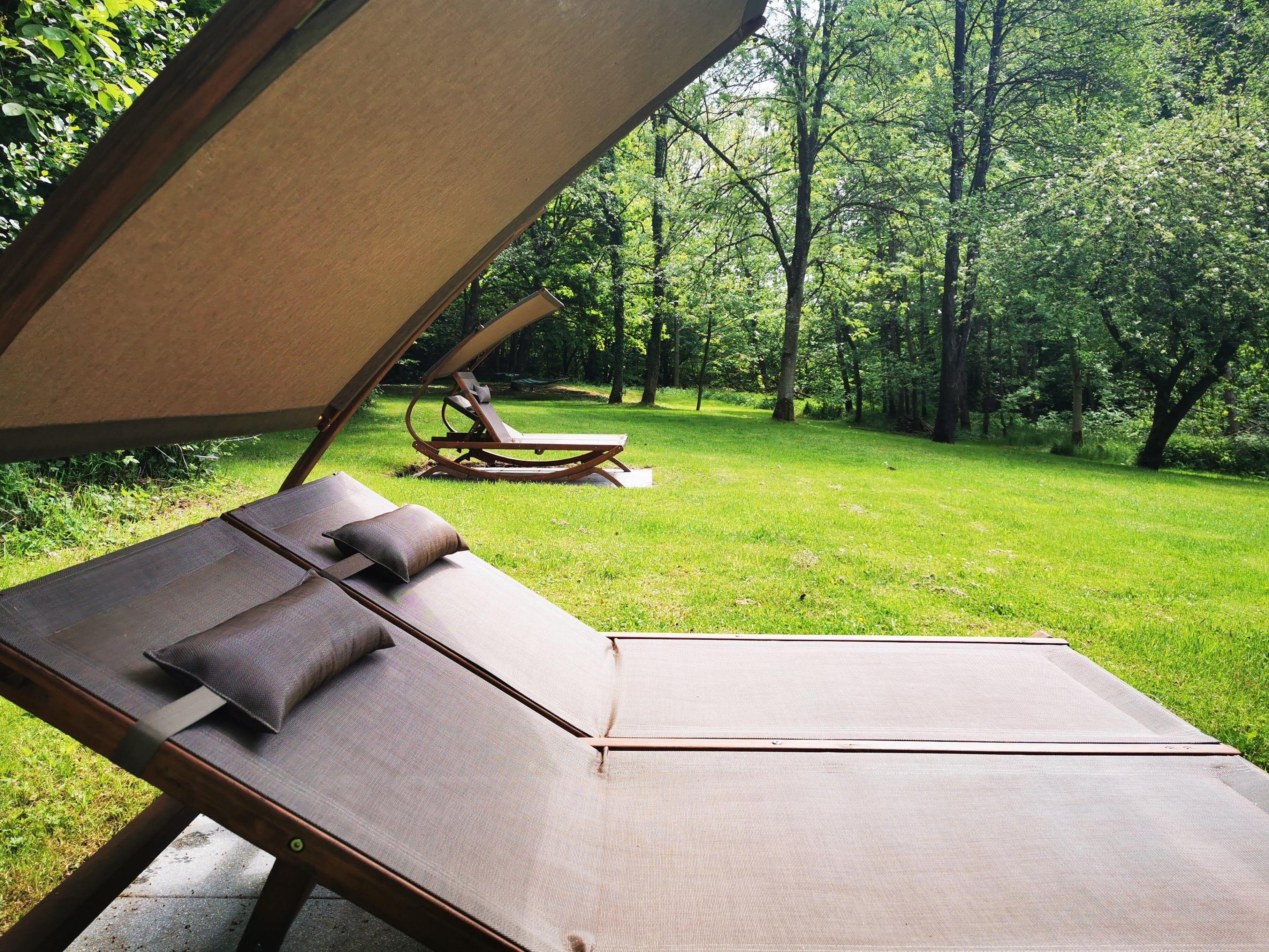 Lehnen Sie sich in einer Hängematte zurück und beobachten Sie mit etwas Glück die heimische Tierwelt: Eichhörnchen, Eulen und Rehe lassen sich hier oft blicken.
