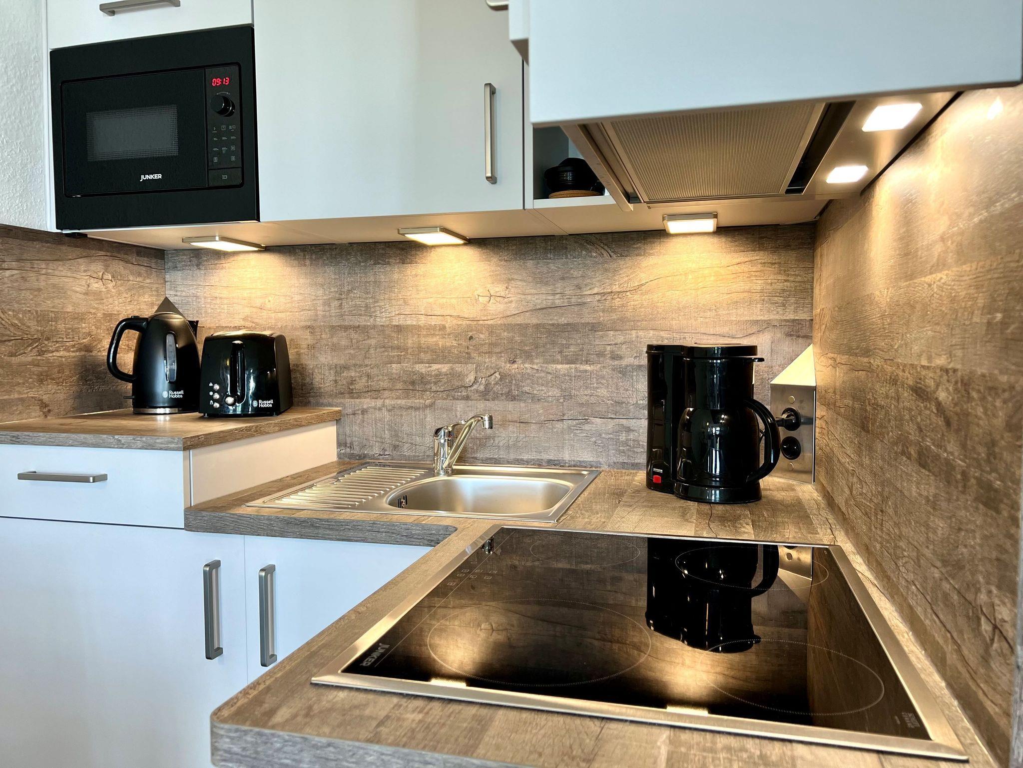 Die Ausstattung der Ferienwohnung umfasst kostenloses WLAN und eine Erstausstattung an Bettwäsche. Im Schlafzimmer befindet sich ein Doppelbett in Form eines Schrankbetts und bietet die Annehmlichkeit eines TV und im Wohnzimmer steht eine Doppelschlafcouch zur Verfügung. Das Badezimmer ist mit einer Dusche, einem WC, einem Föhn und einem Kosmetikspiegel ausgestattet. In der offenen Küche gibt es eine Mikrowelle mit Grillfunktion, eine Kaffeemaschine und einen Toaster. Zur Unterhaltung steht ein Fernseher mit 3 Sky-Sendern bereit. Auf dem Balkon mit Nordwestlage können Sie den Ausblick genießen und auf der Sitzgruppe entspannen. Die Ferienwohnung ist ein Nichtraucher-Apartment und Haustiere sind nicht gestattet.