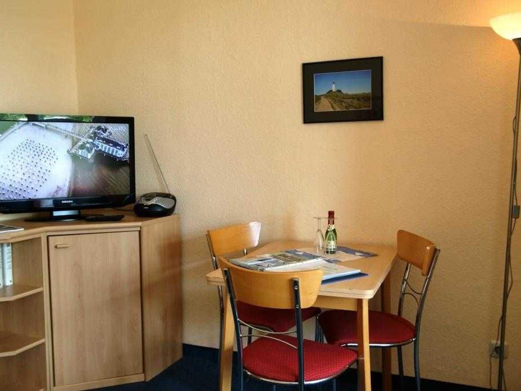 Das 1 Raum Appartement im 3. Stock mit Wohn-Schlafraum und Doppelbett für 2 Personen , Esstisch, Kabel-TV,CD Stereoanlage , gut ausgestattete Küchenzeile mit Geschirrspüler, Kaffeemaschine, Toaster und Microwelle. Babybett ( ohne Wäsche )und Hochstuhl für die Kleinen stellen wir gegen Gebühr zur Verfügung ( bitte vorbestellen ) .